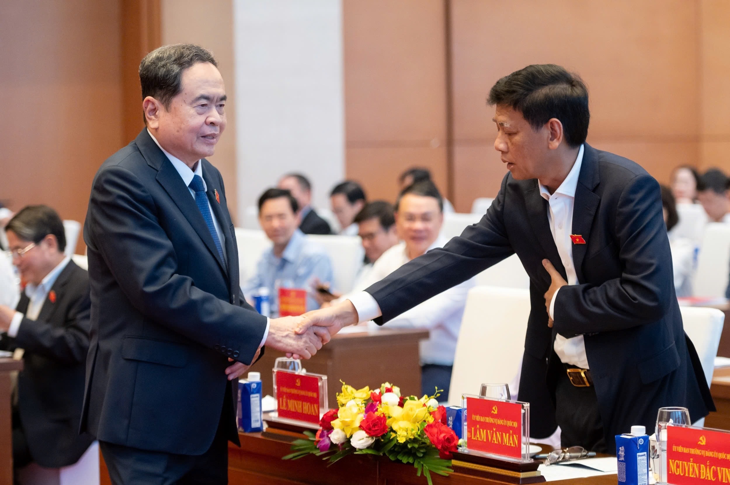 Chủ tịch Quốc hội Trần Thanh Mẫn với Tổng Thư ký Quốc hội, Chủ nhiệm Văn phòng Quốc hội Lê Quang Mạnh. Ảnh: Phạm Thắng
