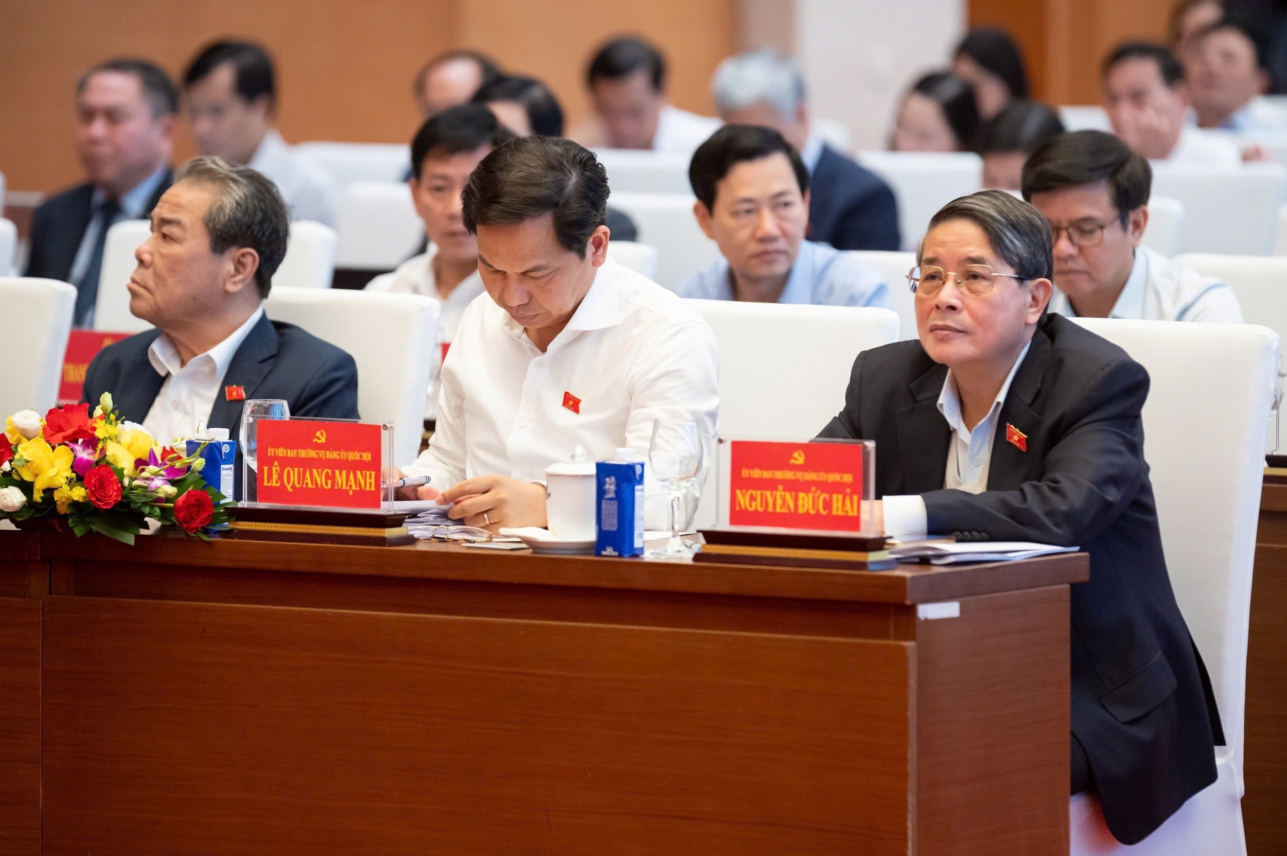 Phó Chủ tịch Quốc hội Nguyễn Đức Hải; Tổng Thư ký Quốc hội, Chủ nhiệm Văn phòng Quốc hội Lê Quang Mạnh và các đại biểu dự hội nghị. Ảnh: Phạm Thắng