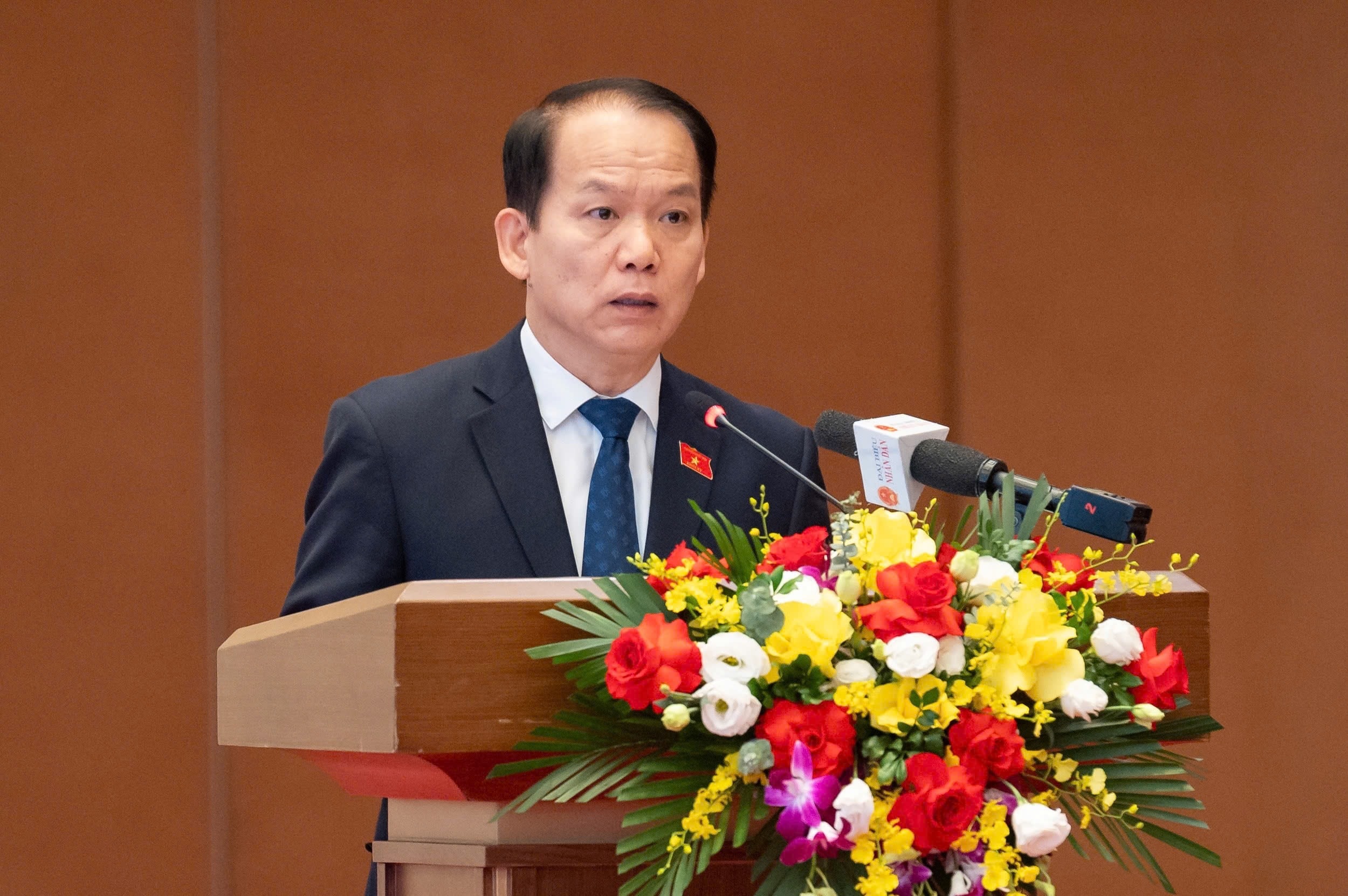 Ủy viên Ban Thường vụ Đảng ủy Quốc hội, Chủ nhiệm Ủy ban Pháp luật và Tư pháp Hoàng Thanh Tùng trình bày báo cáo tóm tắt tổng kết công tác phòng, chống tham nhũng, lãng phí, tiêu cực của Đảng bộ Quốc hội. Ảnh: Phạm Thắng