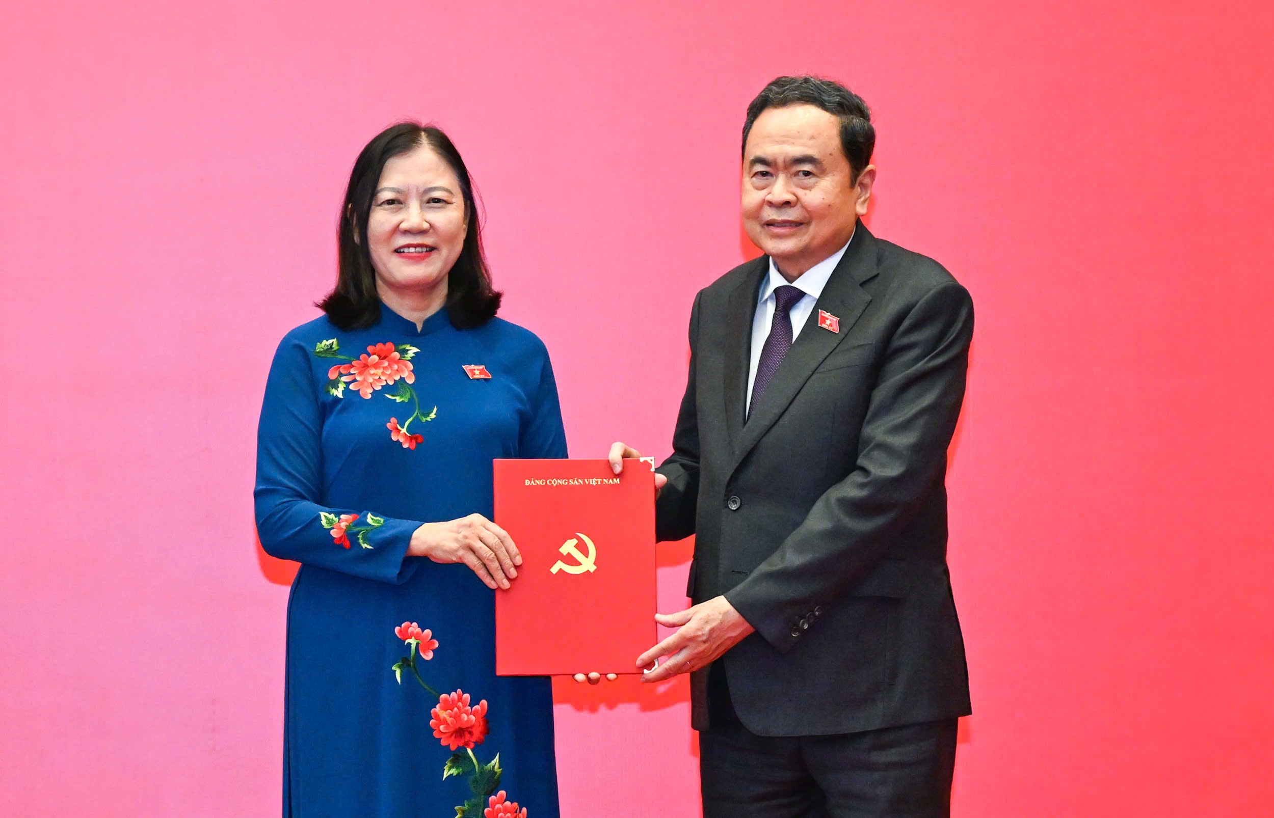 Bí thư Đảng ủy Quốc hội, Chủ tịch Quốc hội Trần Thanh Mẫn trao quyết định của Đảng ủy Quốc hội chỉ định Bí thư Đảng ủy Ủy ban Dân nguyện và Giám sát cho đồng chí Lê Thị Nga