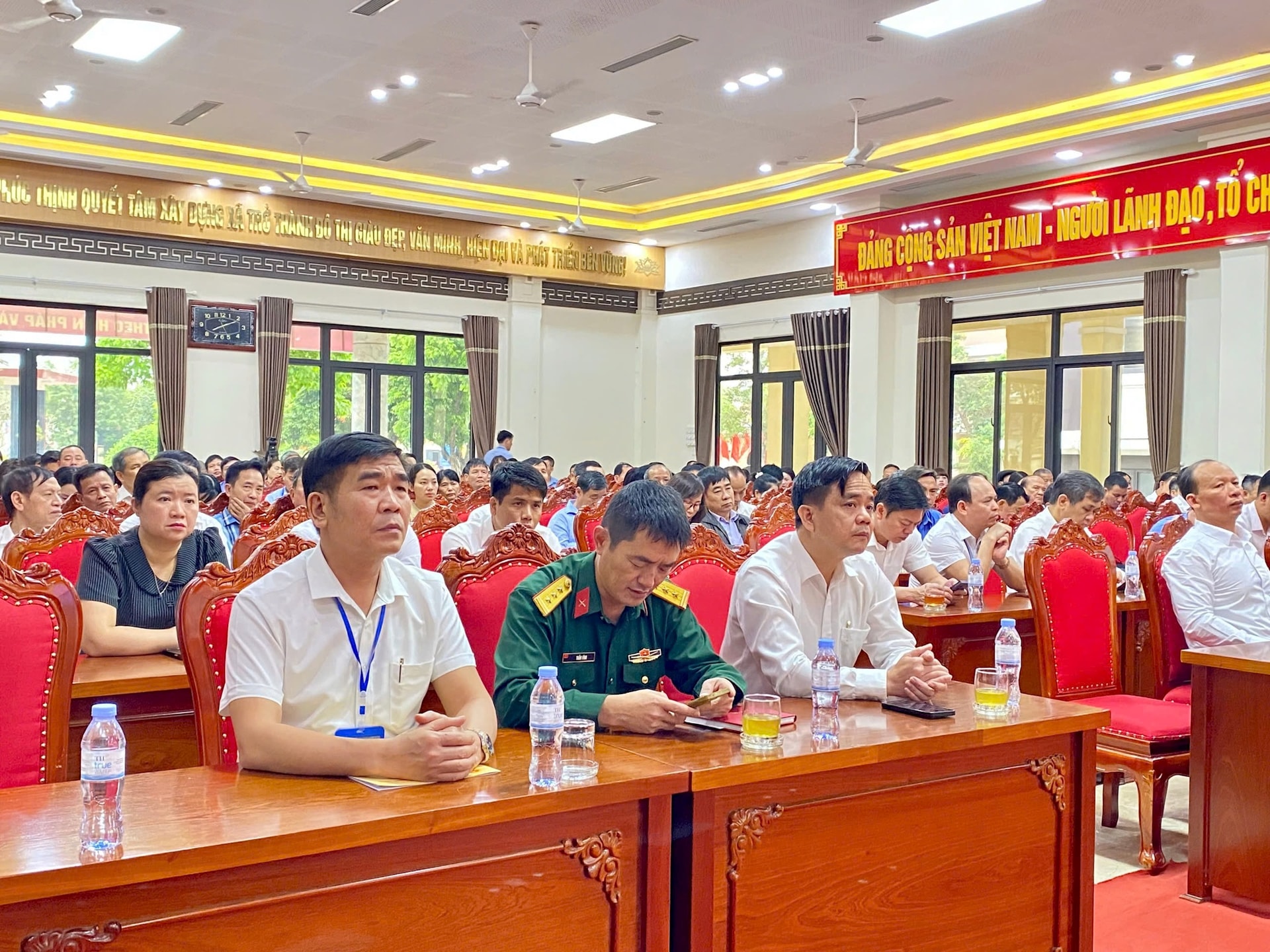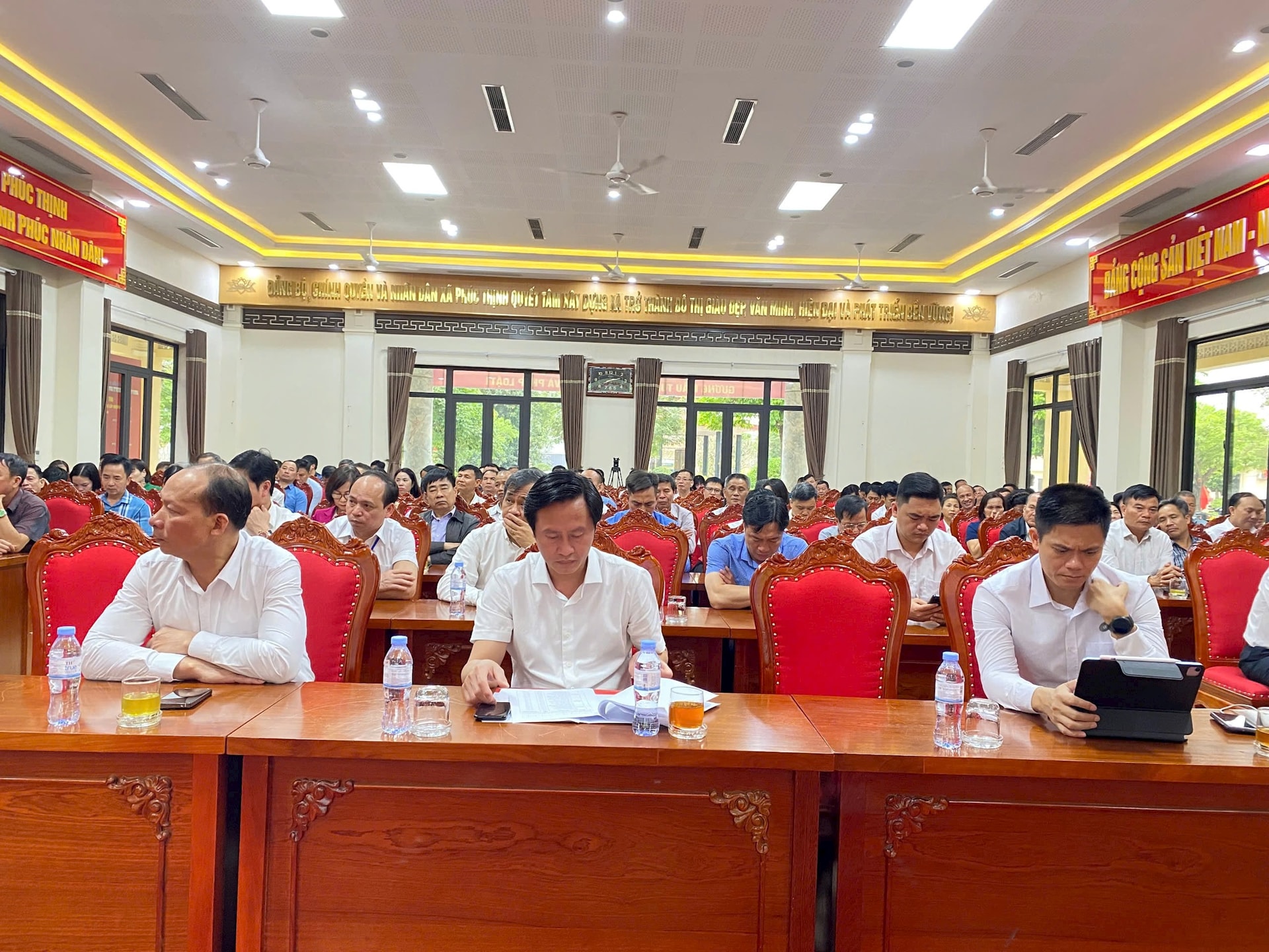 Các đại biểu tham dự hội nghị công bố kết quả bầu cử và danh sách những người trúng cử đại biểu Hội đồng nhân dân (HĐND) xã Phúc Thịnh. Ảnh: Thanh Hà