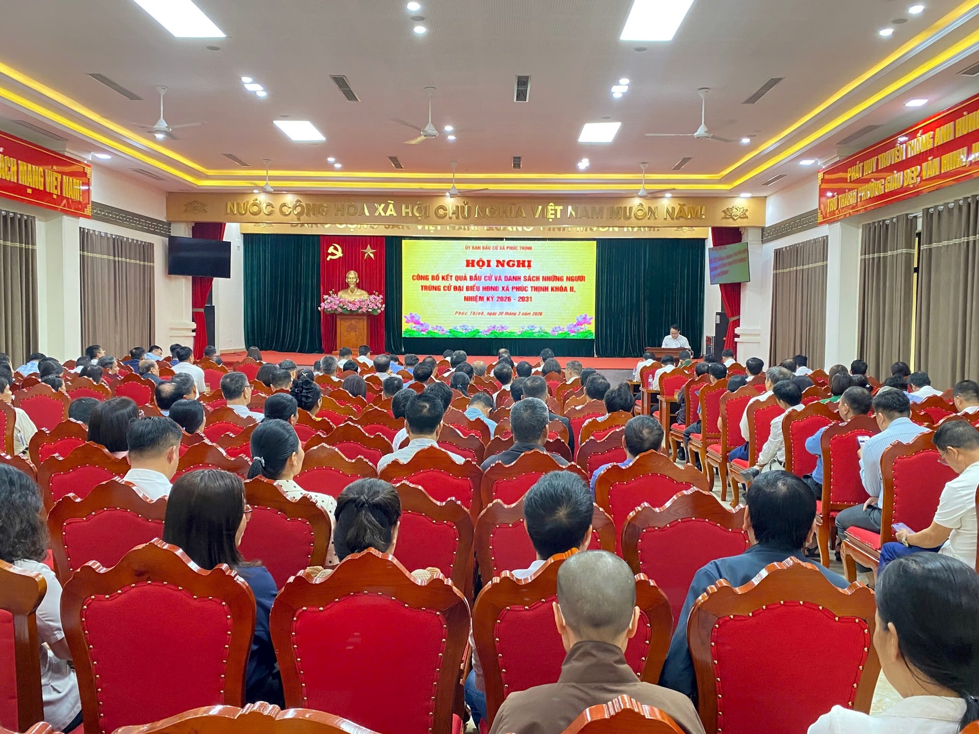 Đặc biệt, cuộc bầu cử đại biểu HĐND xã Phúc Thịnh khóa 2, nhiệm kỳ 2026–2031 đã thành công tốt đẹp với 30 đại biểu trúng cử trên tổng số 48 ứng cử viên tại 6 đơn vị bầu cử. Tổng số cử tri tham gia bỏ phiếu đạt 99,58%, trong đó tỷ lệ phiếu hợp lệ chiếm 99,60%, cho thấy sự nghiêm túc và trách nhiệm của cử tri.