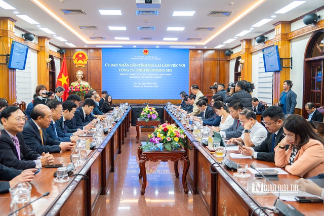 Cũng tại buổi làm việc, Công ty TNHH Blooming Sky ủng hộ người dân Gia Lai bị ảnh hưởng bởi bão lũ 2 tỷ đồng.