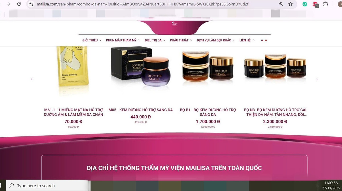Tuy nhiên, theo ghi nhận của PVBáo Tri thức và Cuộc sống sáng 27/11, trên trang web https://mailisa.com/ của Thẩm mỹ viện Mailisa, có nhiều sản phẩm mang thương hiệu Doctor Magic vẫn được quảng cáo, bán công khai. Khách hàng có thể nhấn "mua ngay" hoặc "thêm vào giỏ hàng". Chỉ cần có nhu cầu đặt hàng bấm vào nút "mua ngay", trang web bán hàng hiện ra đơn hàng thành công với giá tiền cần thanh toán, khách hàng chỉ cần điền thông tin mua hàng và thanh toán tiền là giao dịch diễn ra thành công.