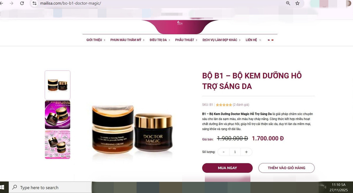 B1 – bộ Kem Dưỡng Doctor Magic đang được bán công khai với giá 1,7 triệu đồng/ Ảnh chụp màn hình