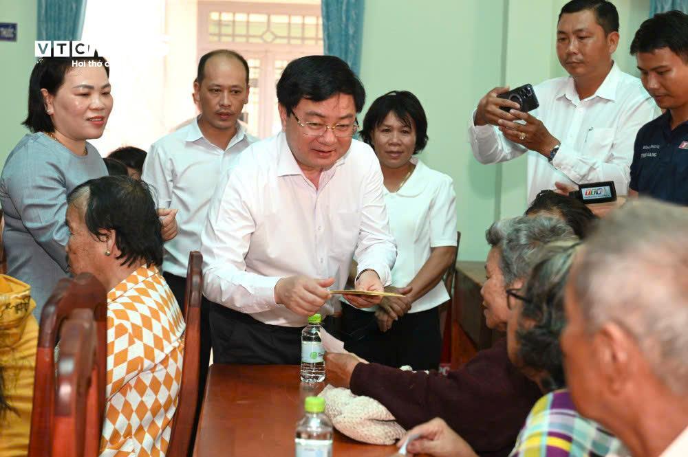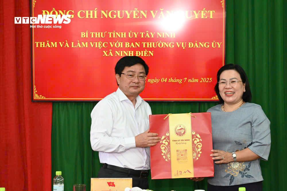 Bí thư Tỉnh ủy Tây Ninh Nguyễn Văn Quyết tặng quà cho lãnh đạo và người dân có hoàn cảnh khó khăn trên địa bàn xã Ninh Điền.