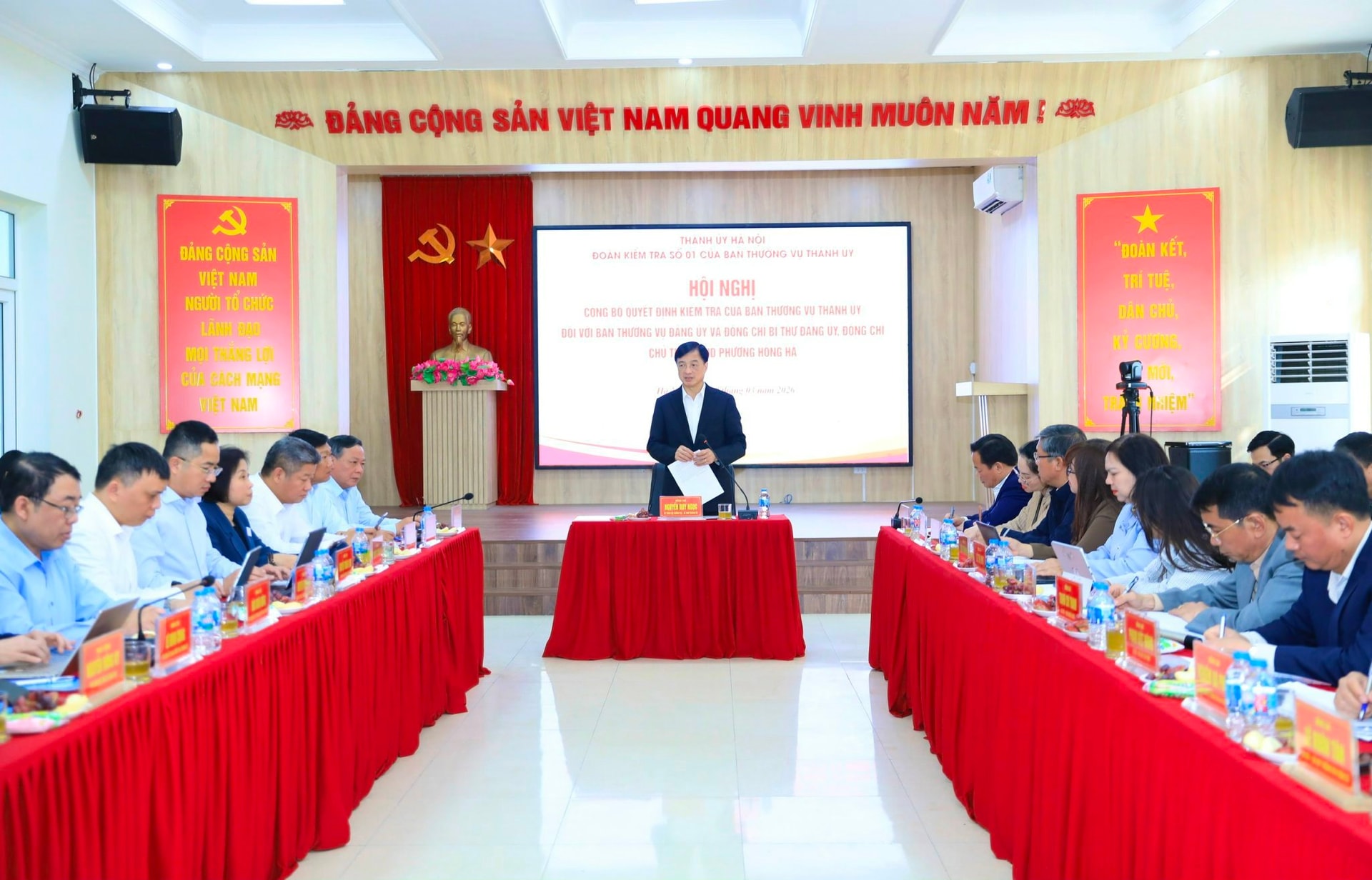 Chiều 10/3, Ủy viên Bộ Chính trị, Bí thư Thành ủy Hà Nội Nguyễn Duy Ngọc, Trưởng đoàn kiểm tra số 01 của Ban Thường vụ Thành ủy đã chủ trì hội nghị công bố quyết định kiểm tra đối với Ban Thường vụ Đảng ủy và Bí thư Đảng ủy, Chủ tịch UBND phường Hồng Hà.