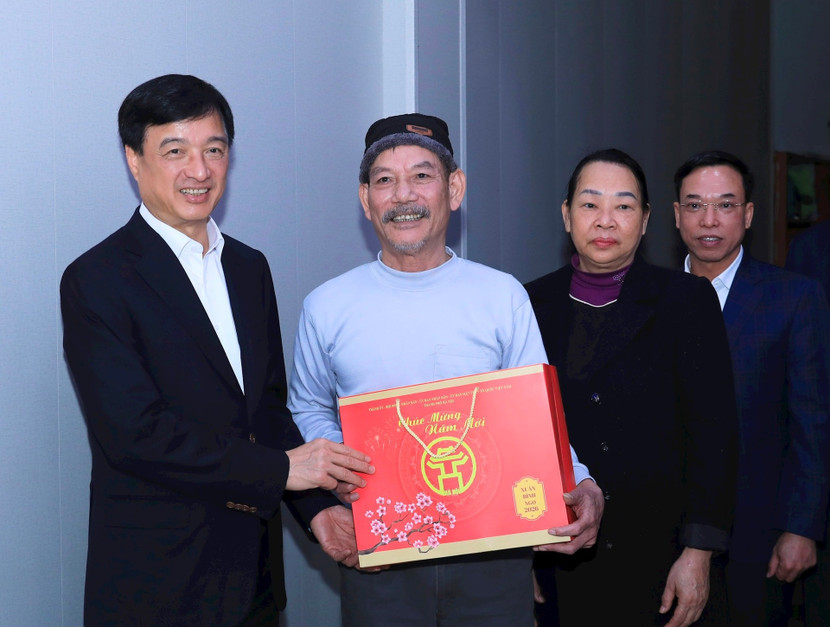 Bí thư Thành ủy Nguyễn Duy Ngọc thăm hỏi, chúc Tết gia đình bà Nguyễn Thị Tiến (Ảnh: Quang Thái)