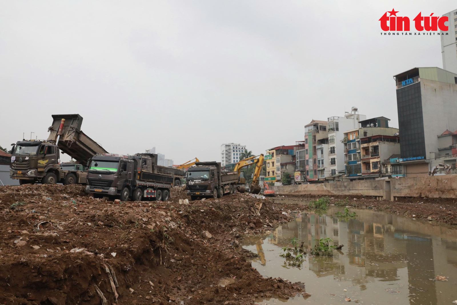 Đơn vị thi công gấp rút làm hồ điều hòa Yên Nghĩa 1.