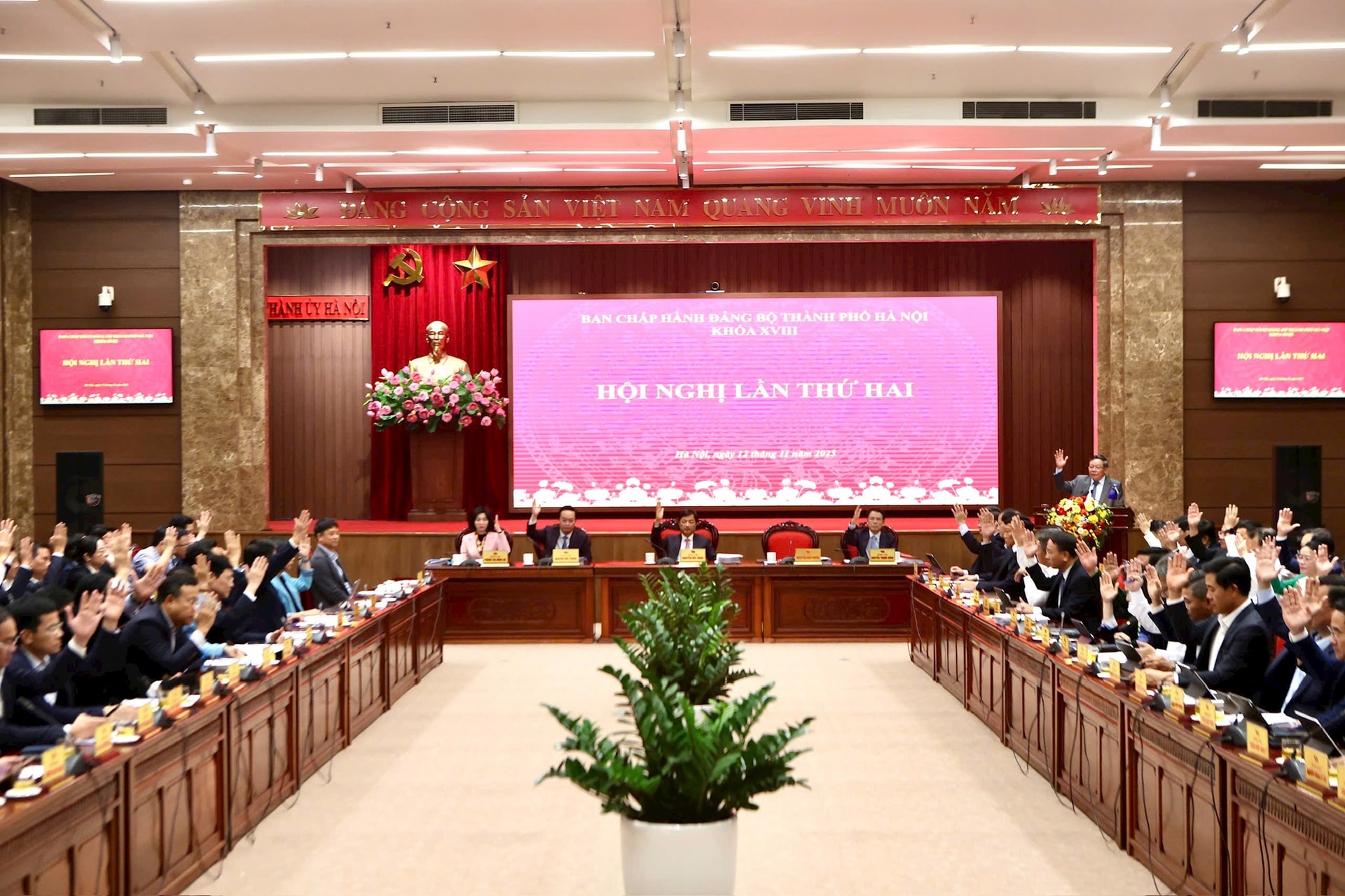 Ban Chấp hành Đảng bộ thành phố biểu quyết thông qua Nghị quyết Hội nghị lần thứ hai. Ảnh: Viết Thành
