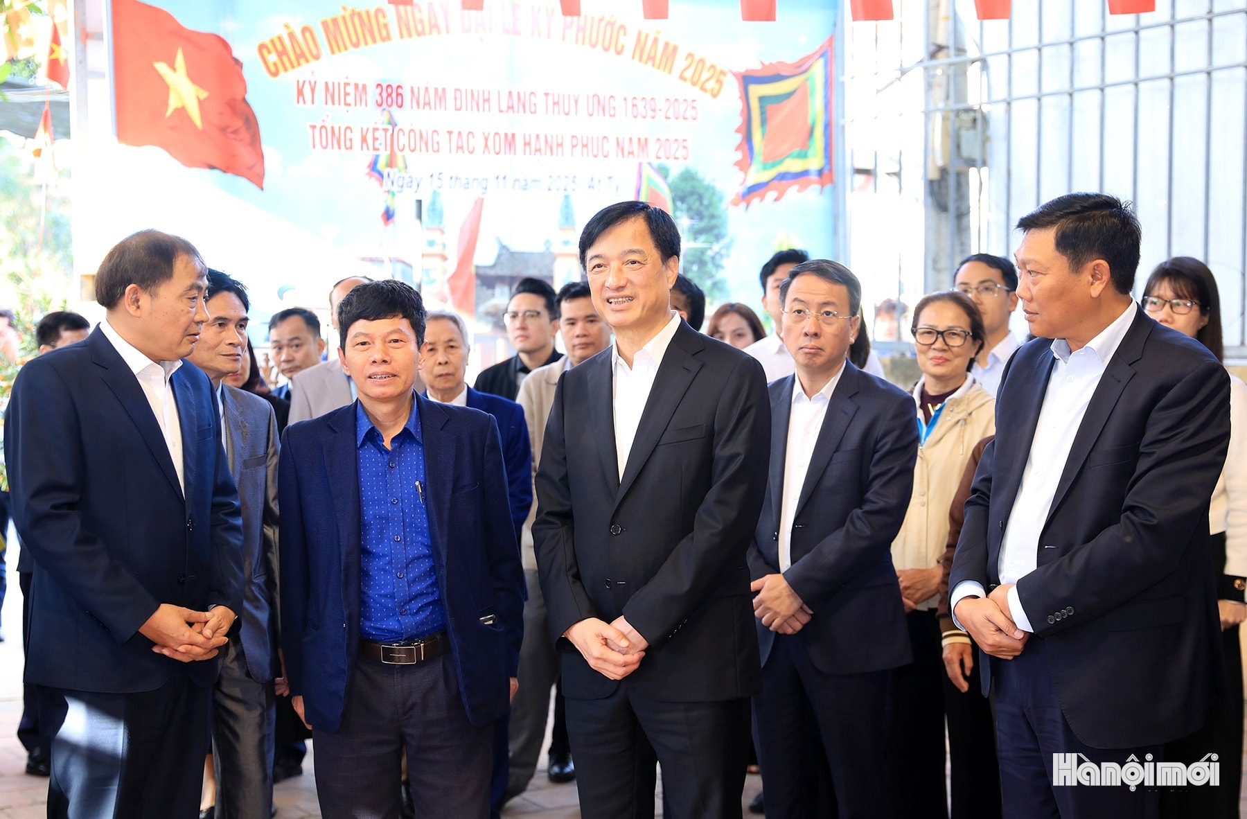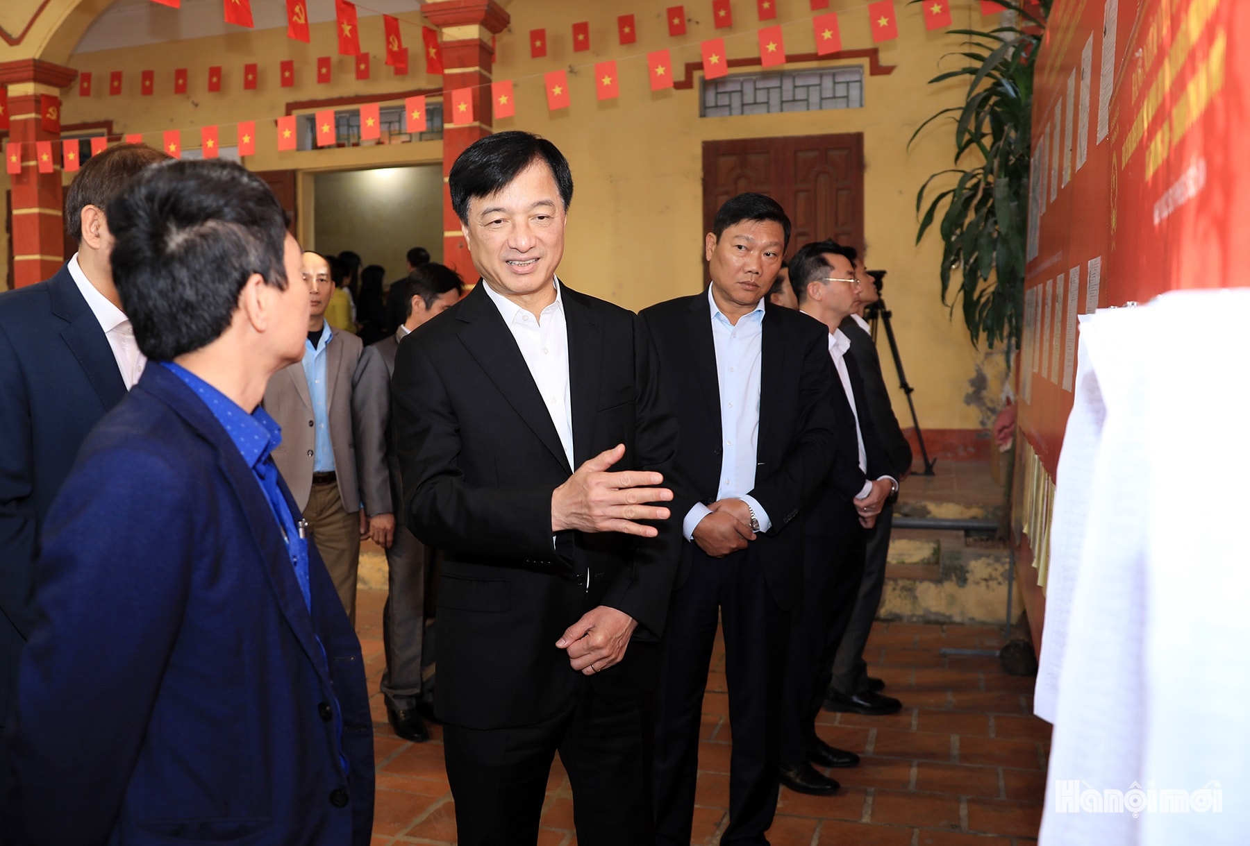 Đoàn công tác của thành phố Hà Nội do Bí thư Thành ủy Hà Nội Nguyễn Duy Ngọc làm Trưởng đoàn kiểm tra khu vực bỏ phiếu số 50, thôn Thụy Ứng (xã Thường Tín).