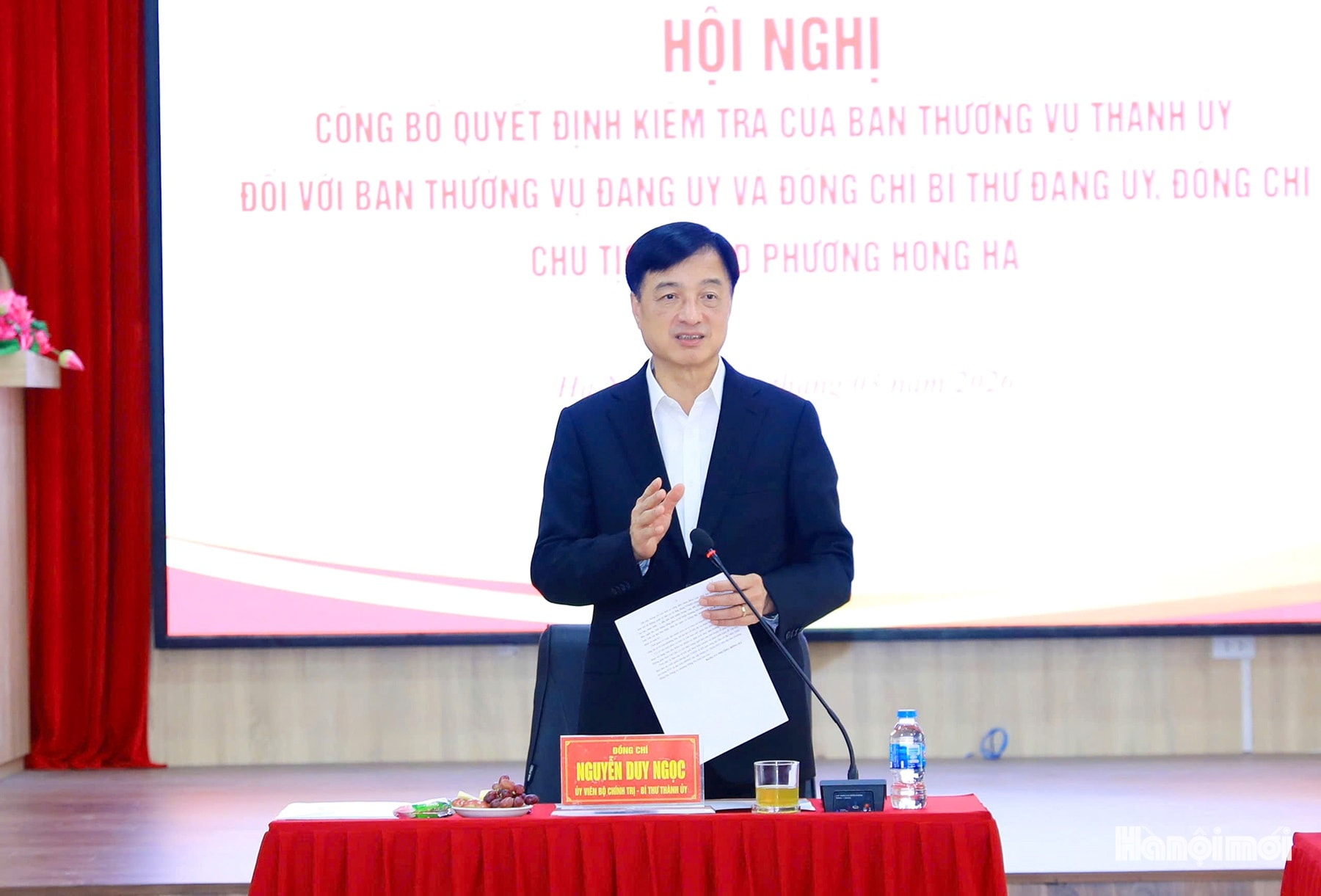 Bí thư Thành ủy Hà Nội Nguyễn Duy Ngọc chủ trì hội nghị công bố quyết định kiểm tra của Ban Thường vụ Thành ủy đối với Ban Thường vụ Đảng ủy và các đồng chí Bí thư Đảng ủy, Chủ tịch UBND xã Thường Tín.