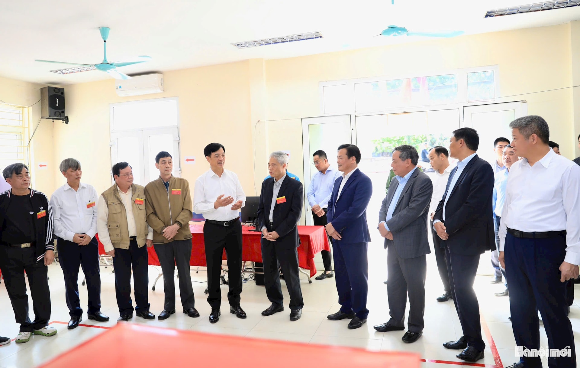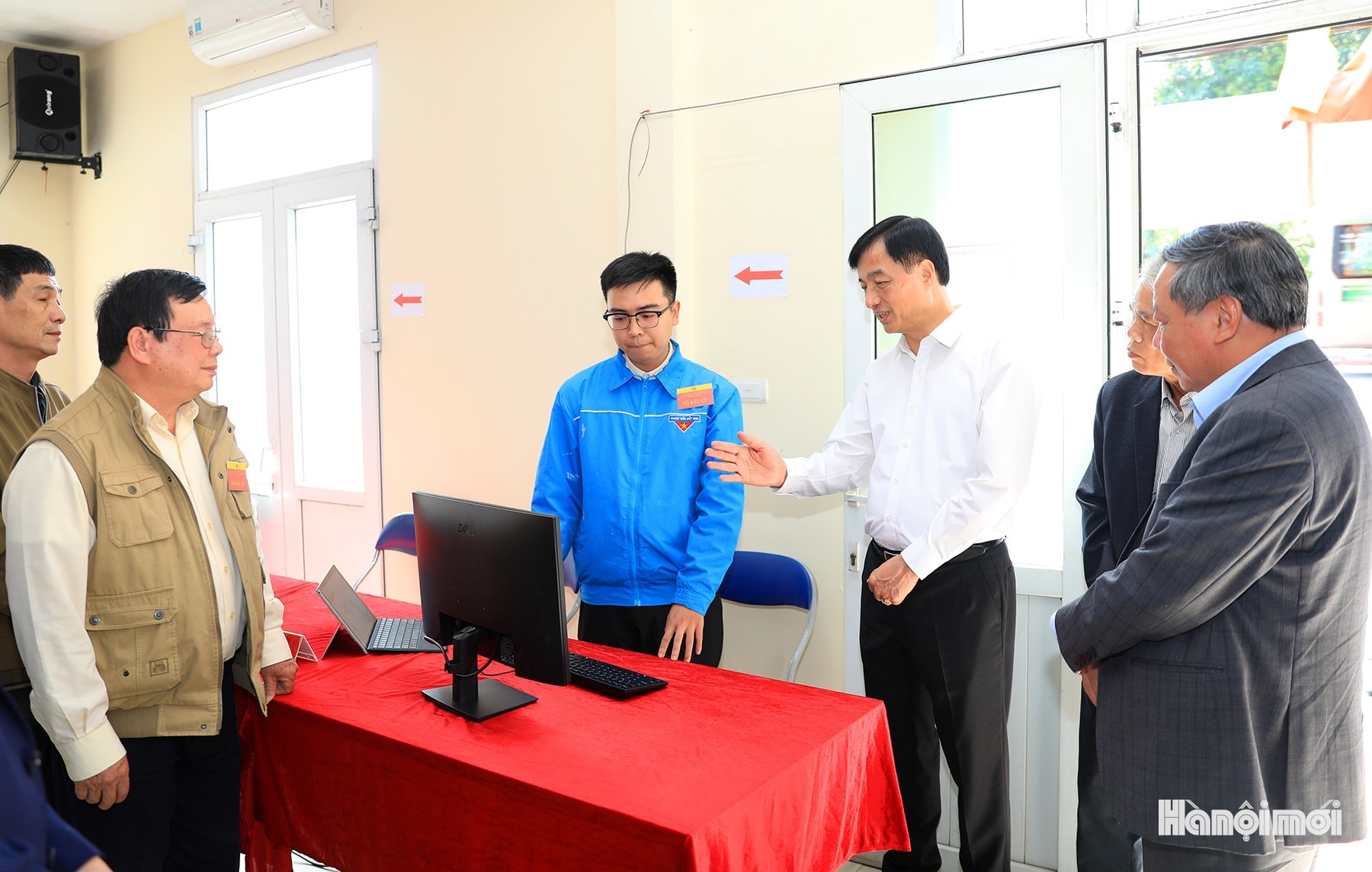 Đoàn công tác của thành phố do Bí thư Thành ủy Hà Nội Nguyễn Duy Ngọc làm Trưởng đoàn kiểm tra điểm bầu cử tại điểm bỏ phiếu số 27 (phường Hồng Hà).