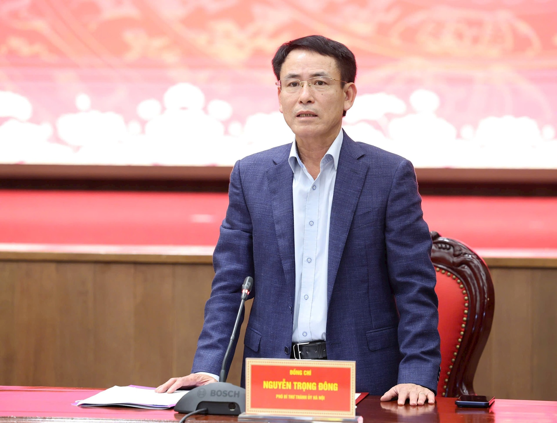 Phó Bí thư Thành ủy Hà Nội Nguyễn Trọng Đông phát biểu tại hội nghị. Ảnh Viết Thành