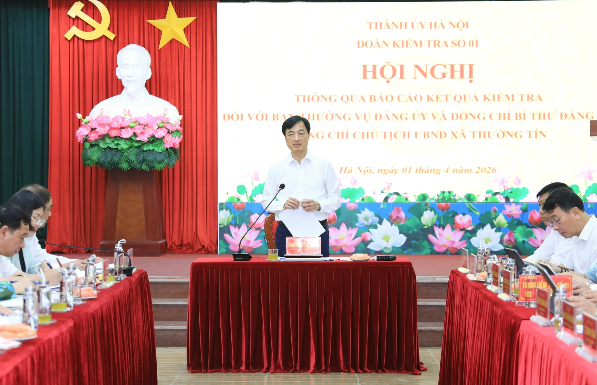 Phát biểu kết luận hội nghị, Bí thư Thành ủy Hà Nội Nguyễn Duy Ngọc đánh giá, dự thảo Báo cáo kết quả kiểm tra đối với Ban Thường vụ Đảng ủy và đồng chí Bí thư Đảng ủy, đồng chí Chủ tịch UBND xã Thường Tín đã thể hiện rõ trách nhiệm về những nhóm công việc được Trung ương, thành phố chỉ đạo đối với hệ thống chính trị trên địa bàn thành phố, trong đó có xã Thường Tín.