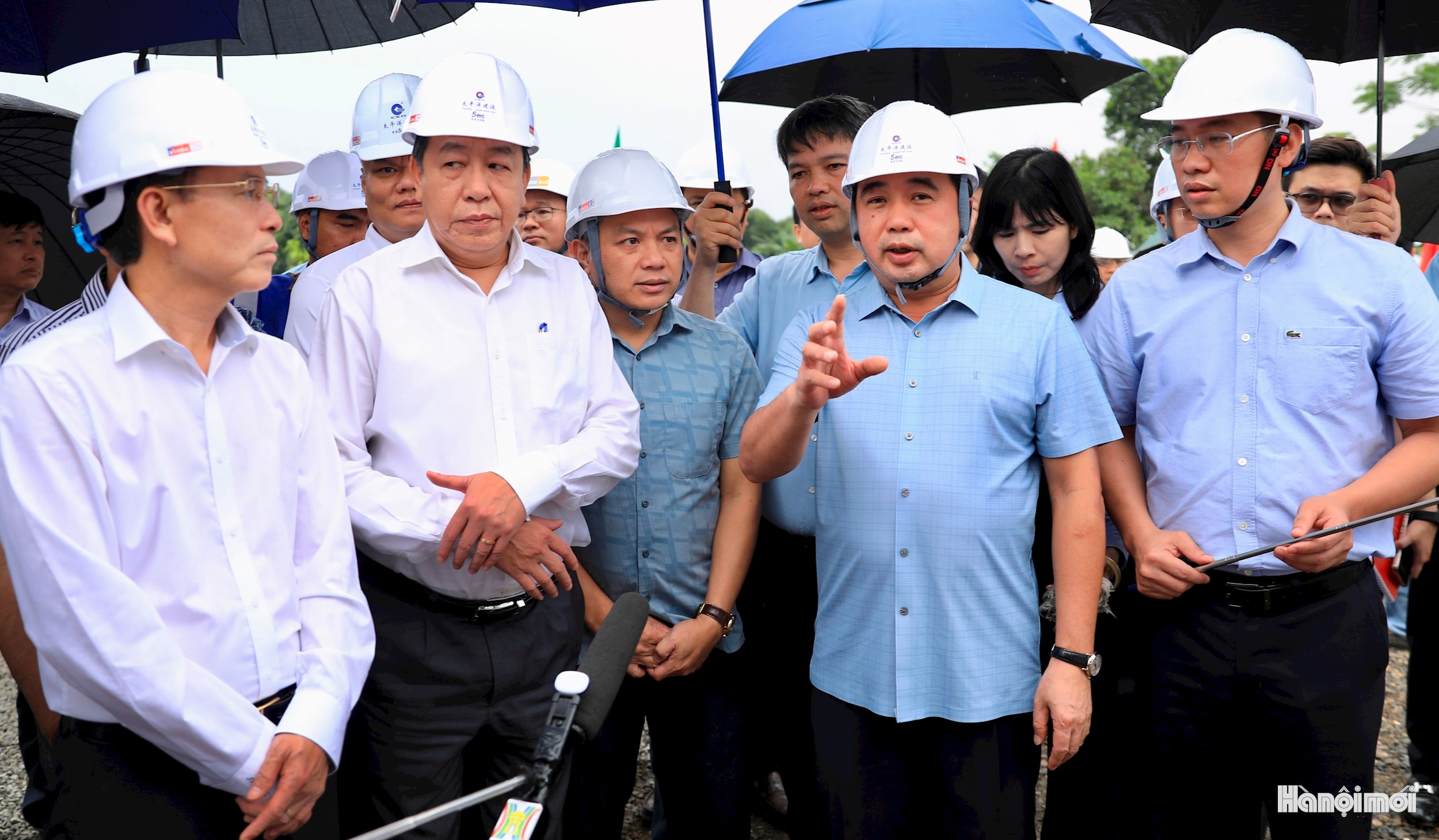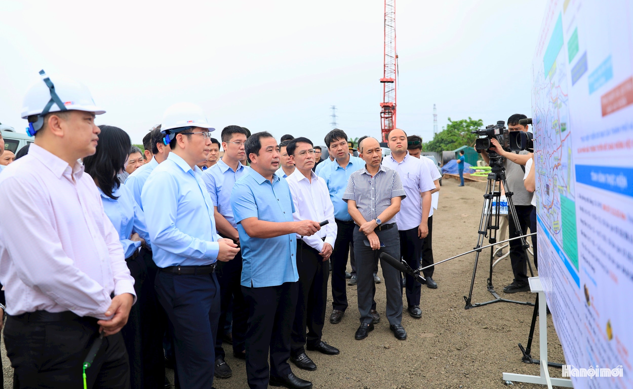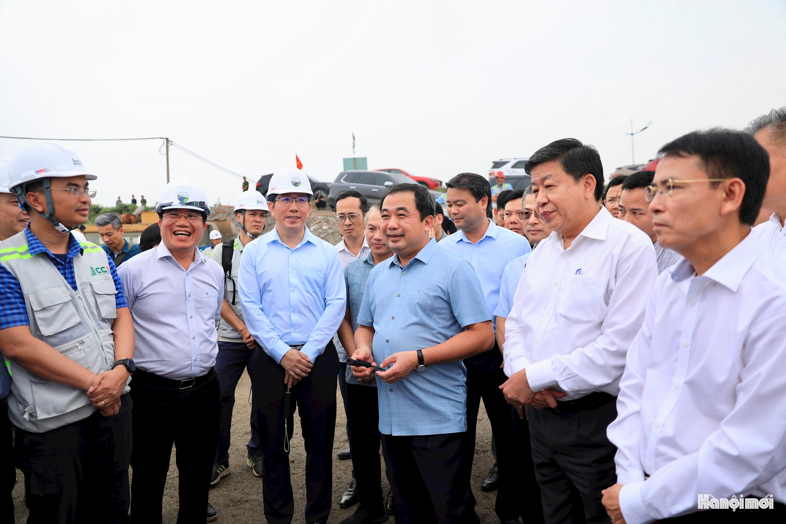 Các đồng chí lãnh đạo thành phố Hà Nội kiểm tra tiến độ thực địa Cầu Mễ Sở - Dự án thành phần 3 thuộc Dự án đầu tư xây dựng đường Vành đai 4 - Vùng Thủ đô Hà Nội.