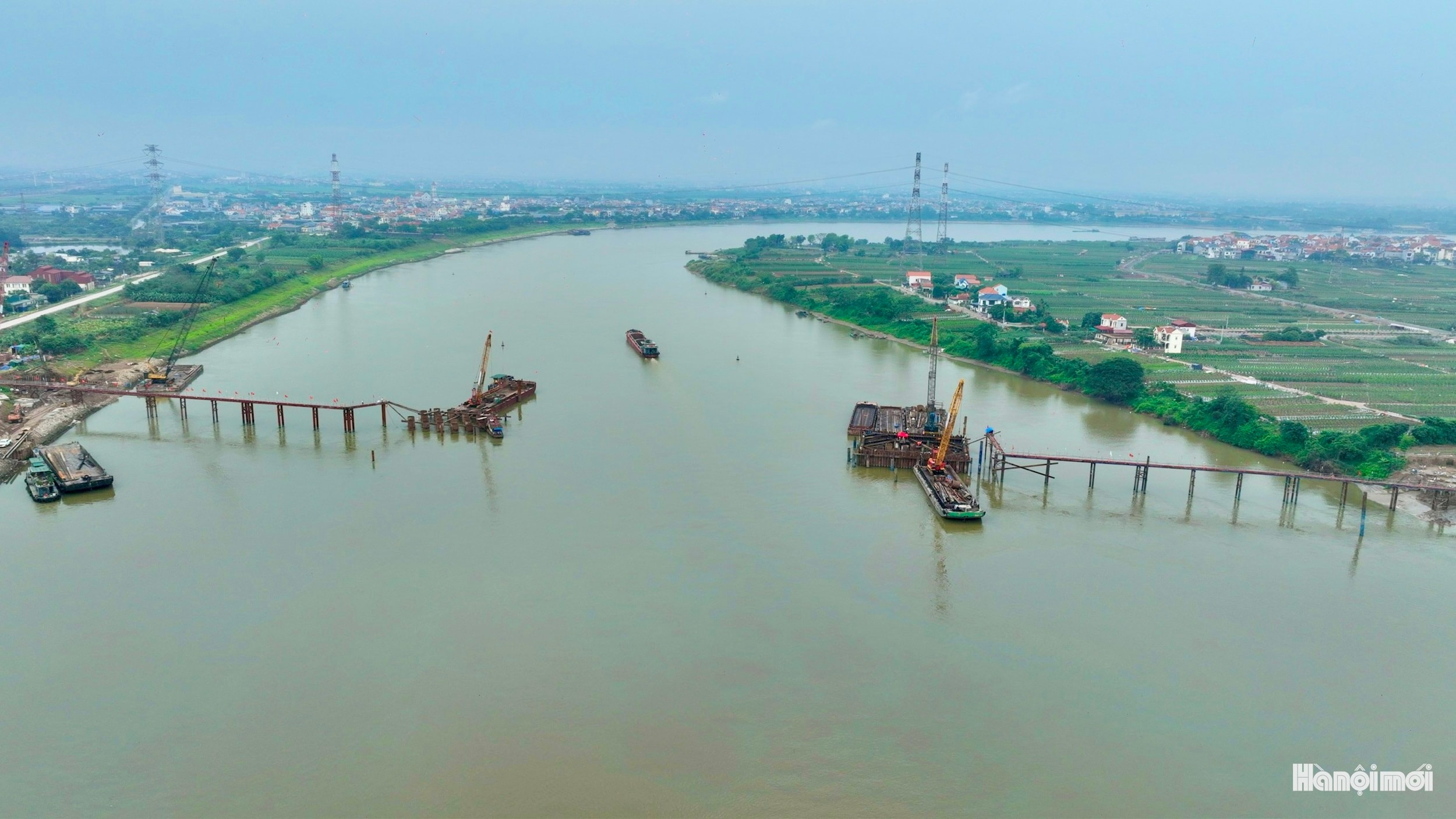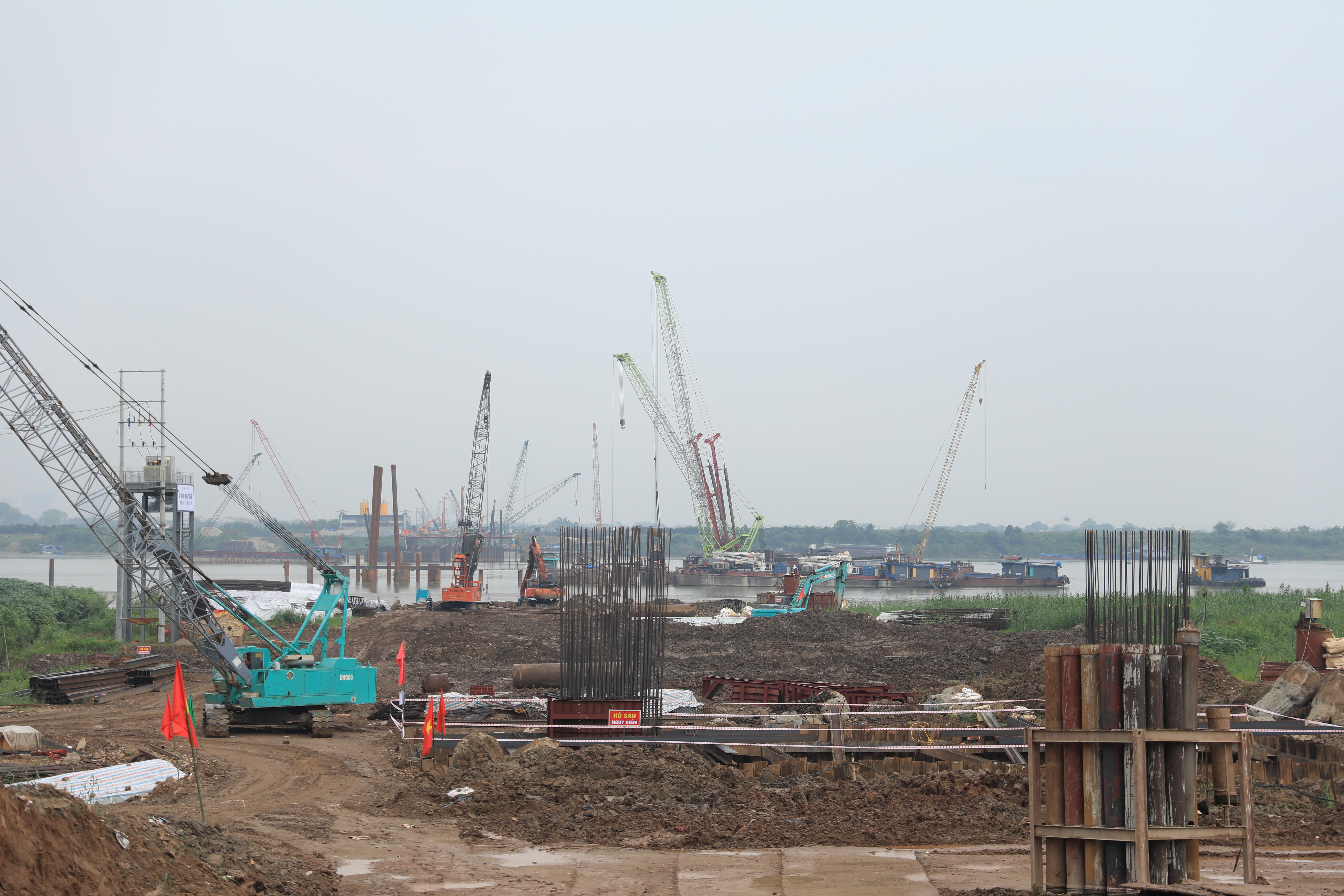 Toàn cảnh công trường thi công cầu Ngọc Hồi.