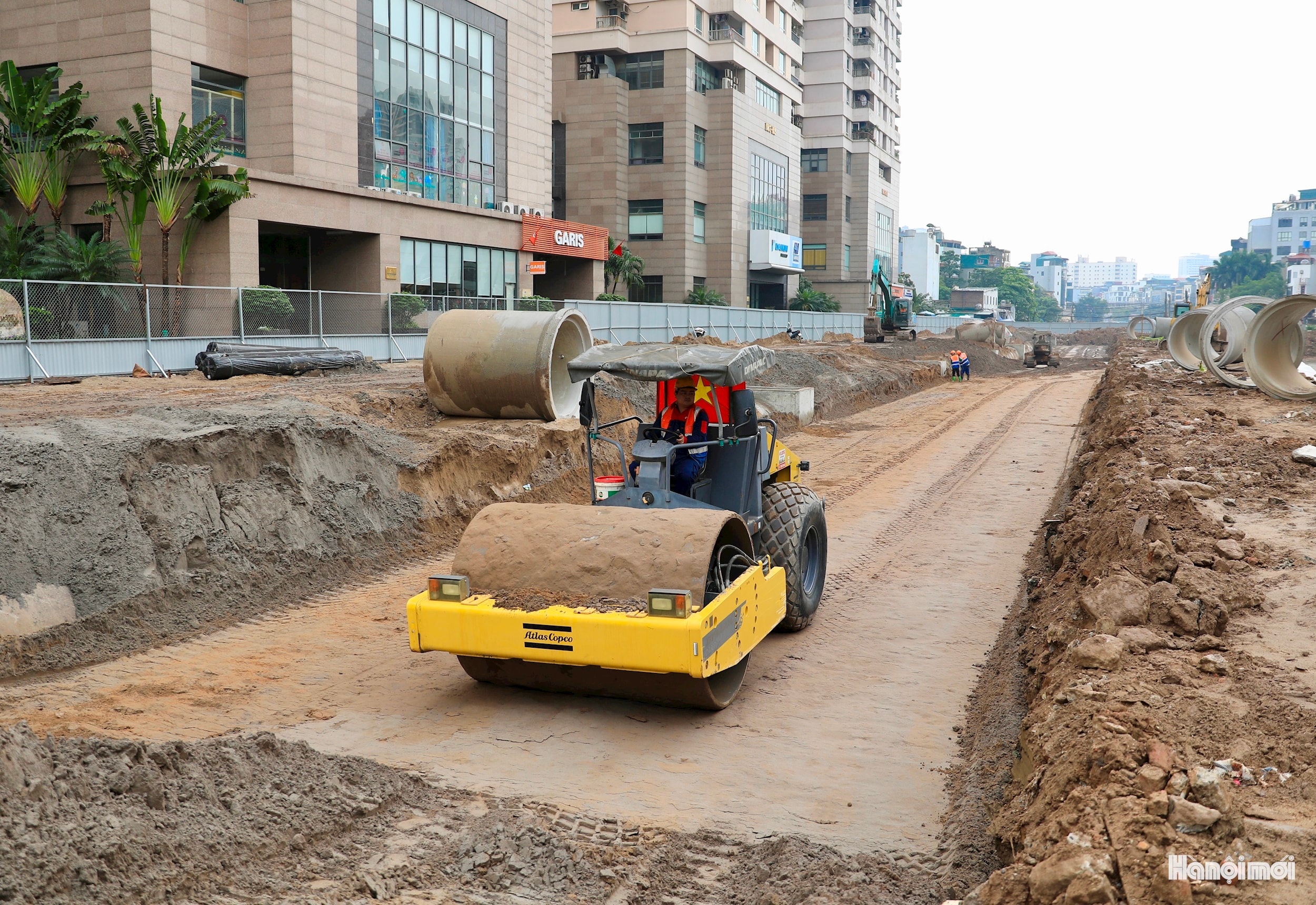 Máy móc, nhân lực của nhà thầu thi công dự án được vận hành khẩn trương, liên tục để bảo đảm tiến độ công việc.
