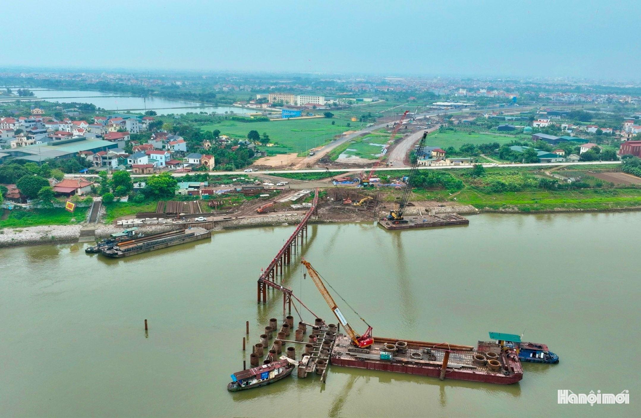 Toàn cảnh công trường thi công cầu Mễ Sở.
