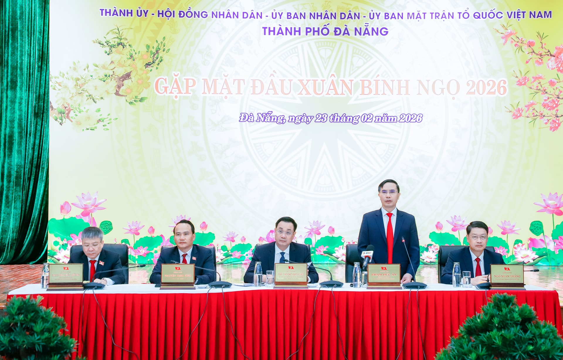 Phát biểu tại buổi gặp mặt, Bí thư Thành ủy Lê Ngọc Quang gửi đến toàn thể cán bộ, đảng viên, lực lượng vũ trang và nhân dân thành phố lời chúc mừng năm mới mạnh khỏe, hạnh phúc và thành công. Đồng thời đánh giá cao UBND thành phố, các địa phương, cơ quan, đơn vị đã chủ động, tích cực chuẩn bị chu đáo các điều kiện phục vụ nhân dân vui xuân, đón Tết.
