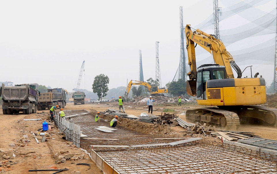 Thi công dự án đầu tư xây dựng hồ điều hòa Phú Đô, phường Từ Liêm. Ảnh: Quang Thái