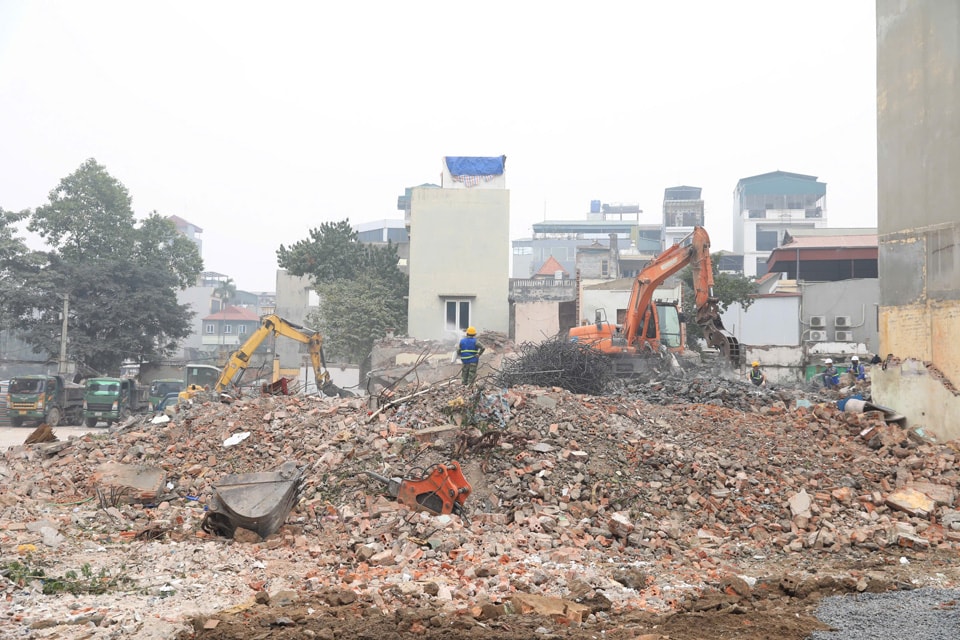 Thi công giải phóng mặt bằng đường Vành đai 2.5 đoạn phường Cầu Giấy. Ảnh: Quang Thái