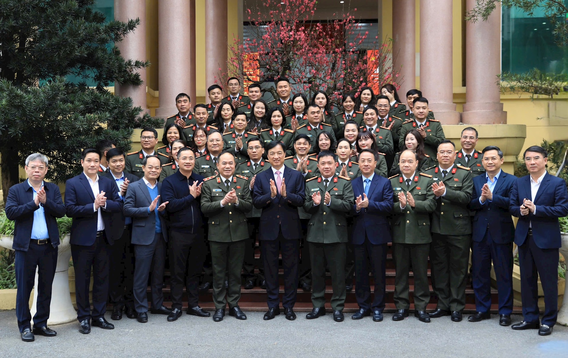 Bí thư Thành ủy Hà Nội Nguyễn Duy Ngọc thăm, chúc Tết cán bộ, chiến sĩ Phòng An ninh chính trị nội bộ. Ảnh: Quang Thái