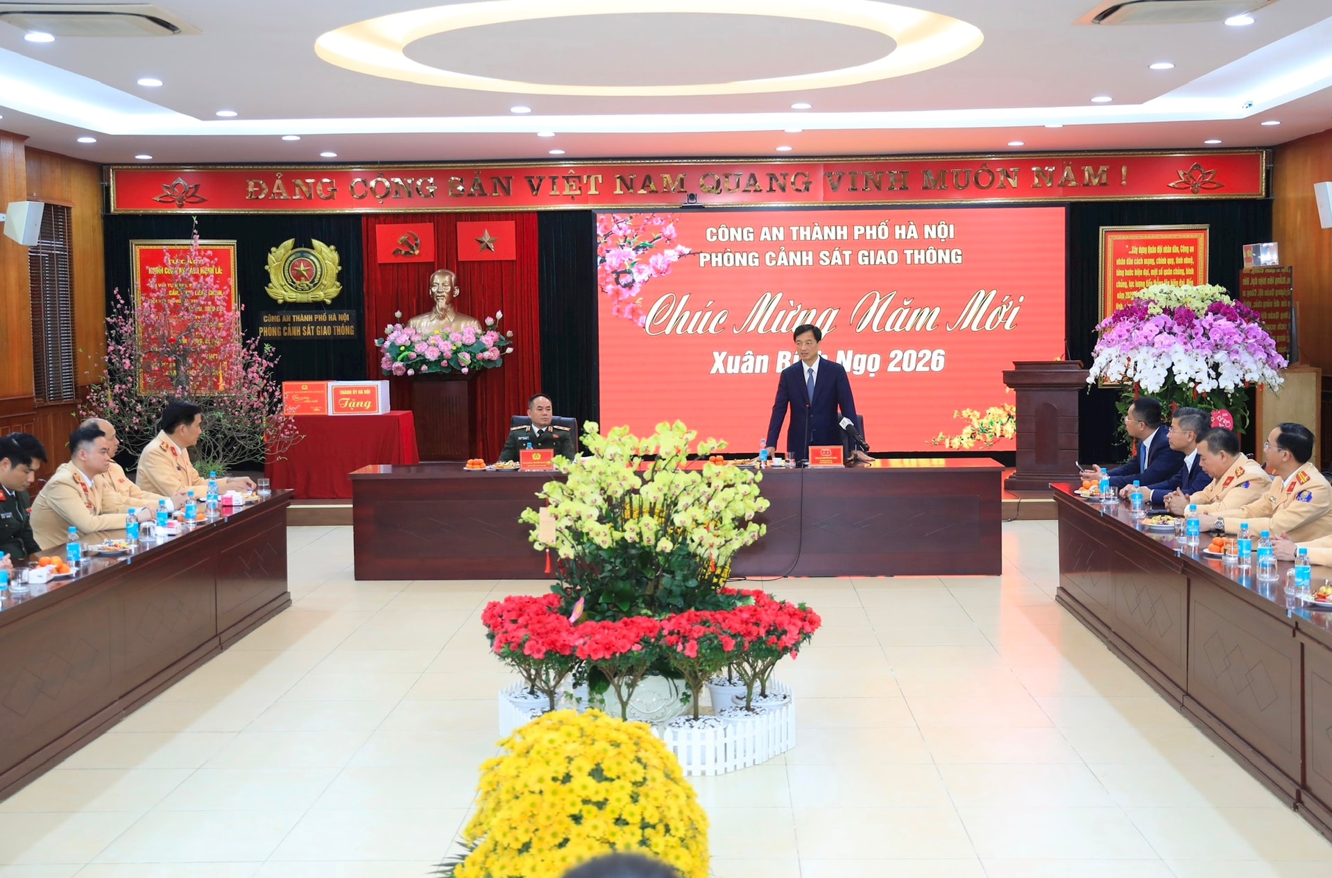 Phát biểu chúc mừng nhân dịp đón Xuân mới Bính Ngọ 2026, Bí thư Thành ủy Hà Nội Nguyễn Duy Ngọc biểu dương các thành tích lực lượng Cảnh sát giao thông Thủ đô đã đạt được trong năm 2025.