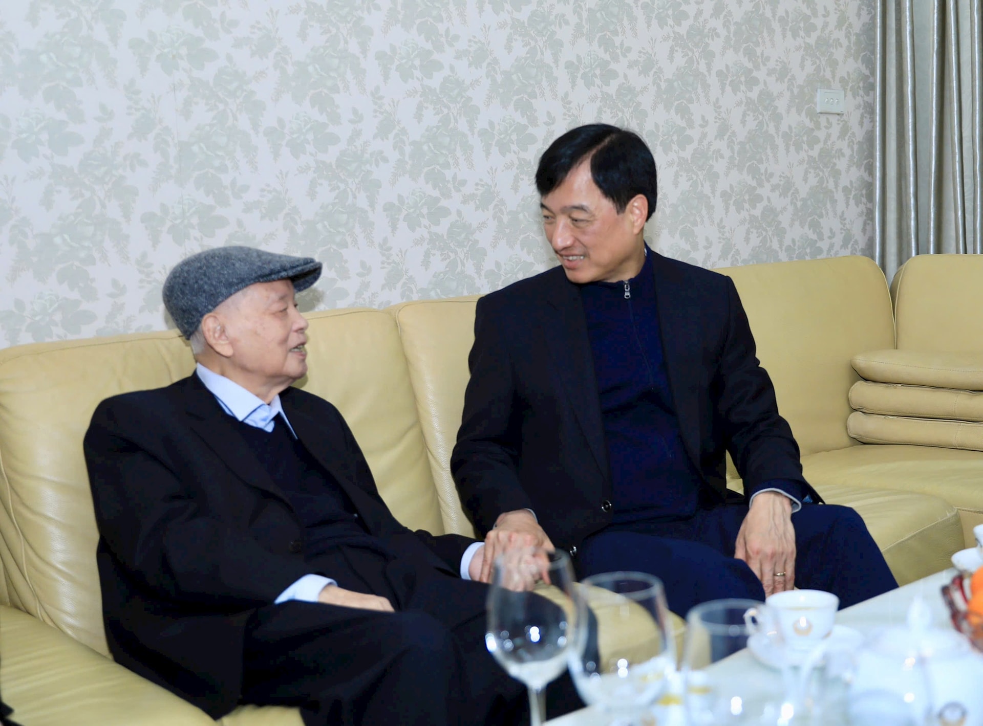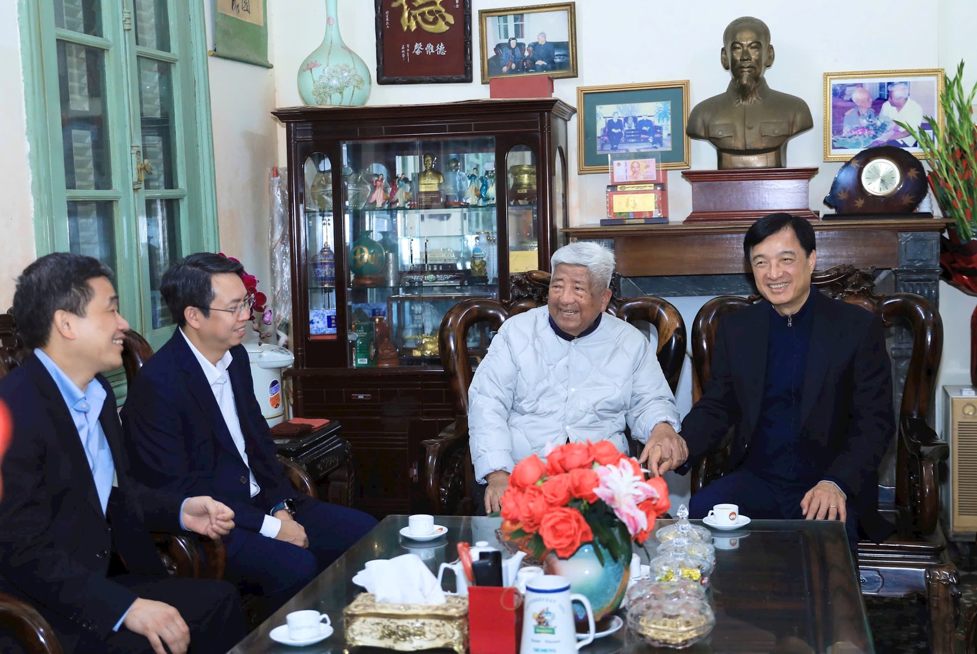 Bí thư Thành ủy Hà Nội Nguyễn Duy Ngọc ân cần thăm hỏi sức khỏe, chúc đồng chí Nông Đức Mạnh cùng gia đình một năm mới mạnh khỏe, an khang, thịnh vượng.