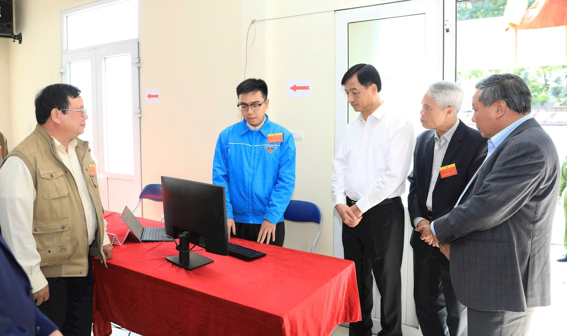 Bí thư Thành ủy Hà Nội Nguyễn Duy Ngọc và Phó Bí thư Thành ủy Hà Nội Nguyễn Văn Phong kiểm tra điểm bầu cử tại điểm bỏ phiếu số 27 (phường Hồng Hà). Ảnh: Quang Thái