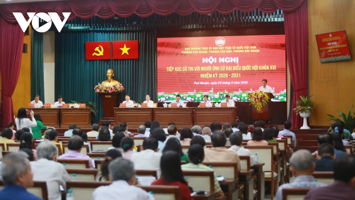 Sáng 3/3, Ban Thường trực Ủy ban Mặt trận Tổ quốc Việt Nam các phường Phú Nhuận, Cầu Kiệu, Đức Nhuận (thuộc quận Phú Nhuận cũ) tổ chức Hội nghị tiếp xúc cử tri với người ứng cử đại biểu Quốc hội (ĐBQH) khóa XVI, nhiệm kỳ 2026 – 2031 với tổ bầu cử đơn vị số 6.