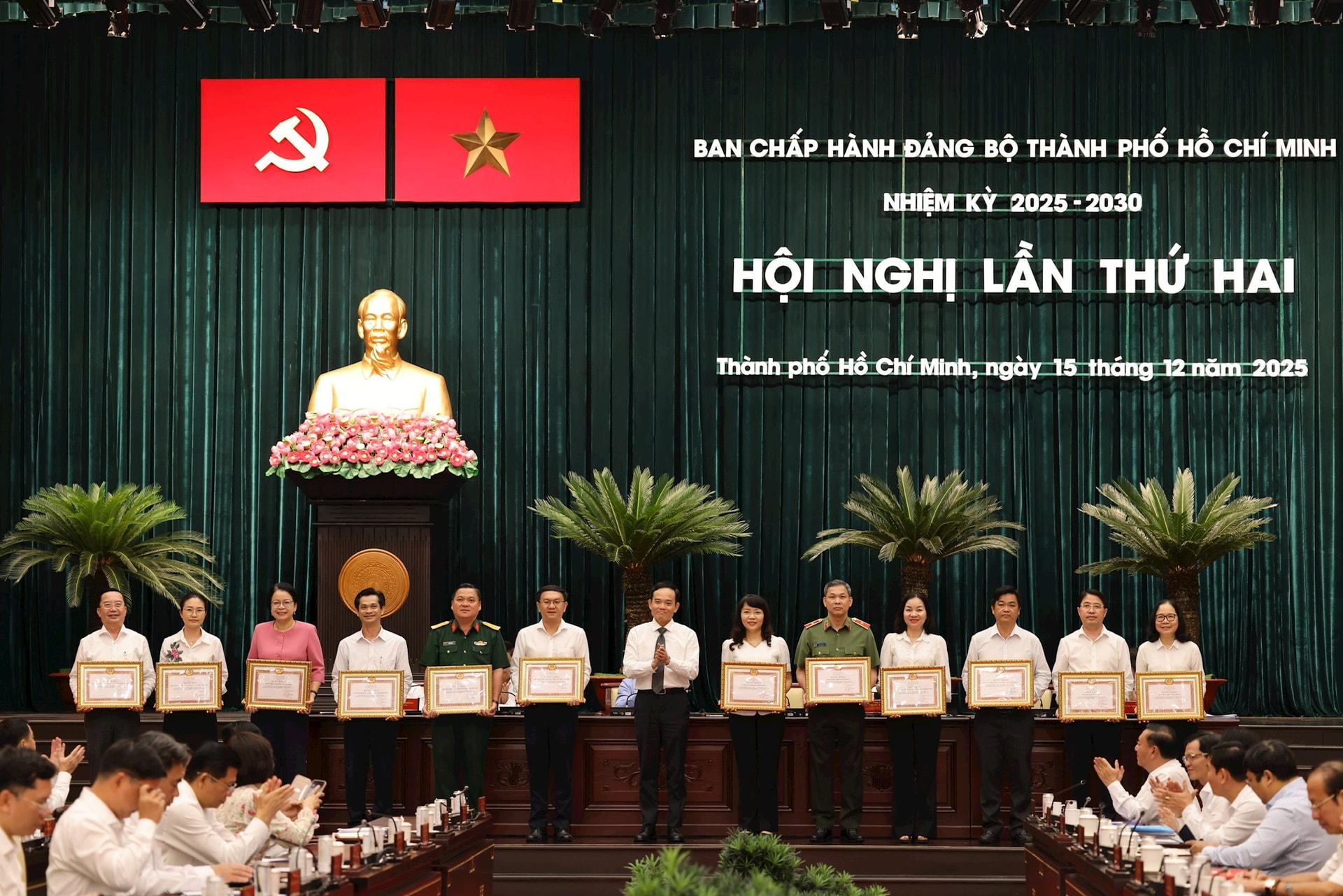 Tại Hội nghị, Ban Tổ chức Thành ủy đã Bằng khen cho 12 tập thể, 14 cá nhân có thành tích xuất sắc trong tham mưu, tổ chức Đại hội Đảng bộ TP.HCM lần thứ I, nhiệm kỳ 2025-2030.