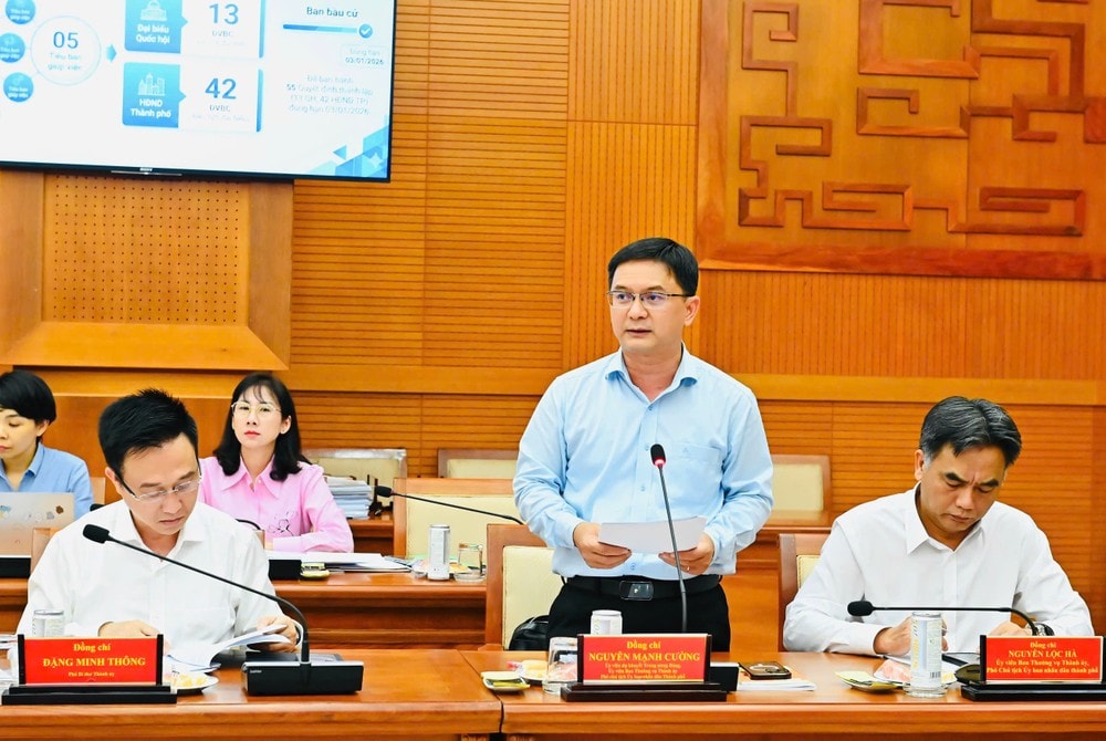 Tại cuộc họp, Ủy viên Dự khuyết Trung ương Đảng, Ủy viên Ban Thường vụ Thành ủy, Phó Chủ tịch UBND thành phố, Phó Chủ tịch Ủy ban bầu cử đại biểu Quốc hội (ĐBQH) Khóa XVI và đại biểu HĐND TP. Hồ Chí Minh nhiệm kỳ 2026-2031 Nguyễn Mạnh Cường đã báo cáo tình hình, kết quả triển khai công tác tổ chức bầu cử ĐBQH và đại biểu HĐND TPHCM nhiệm kỳ 2021-2031.