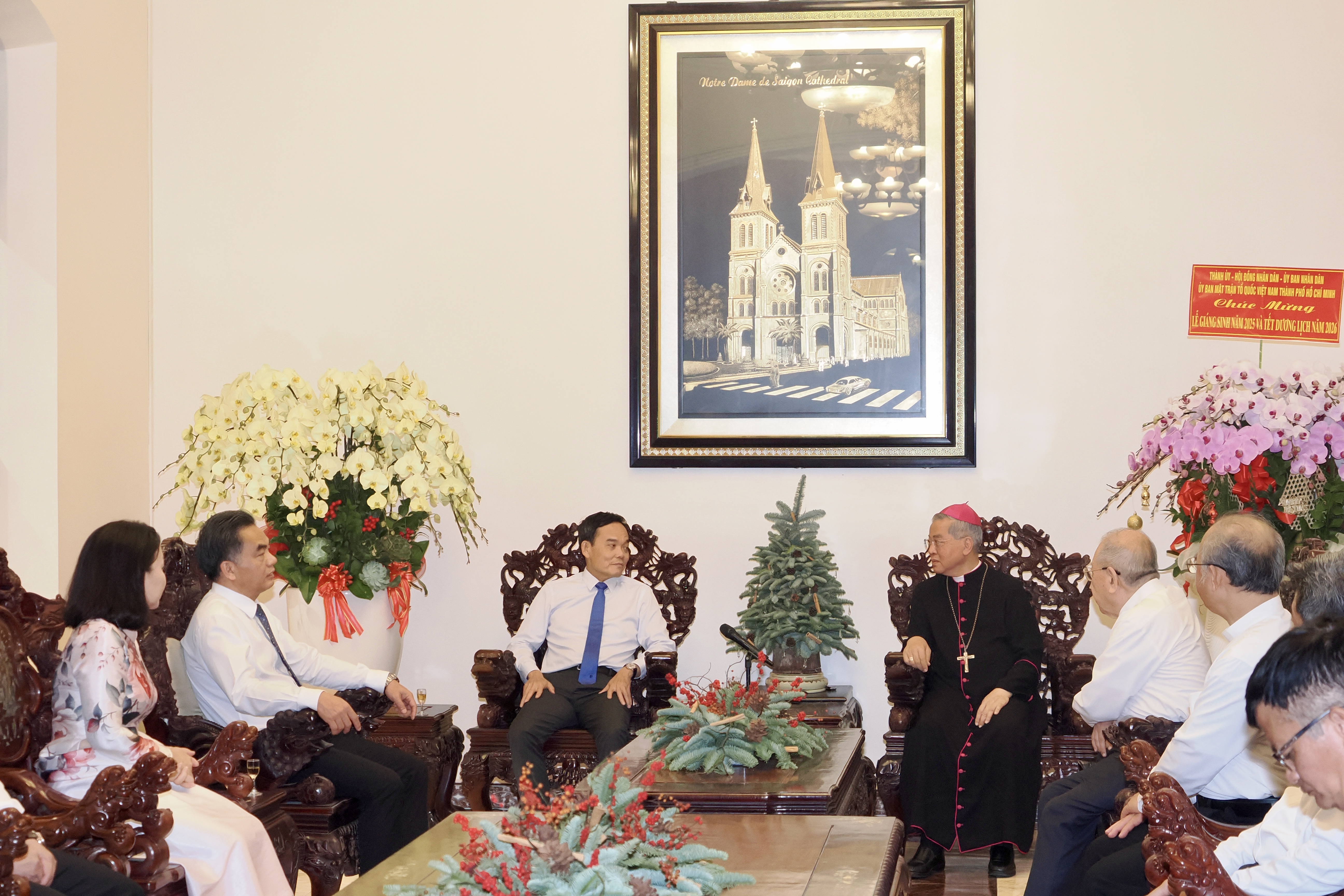 Tiếp đó, đoàn đến thăm, chúc mừng Lễ Giáng sinh Tòa Tổng Giám mục Tổng Giáo phận TPHCM; thăm, chúc mừng Đức Tổng Giám mục Giuse Nguyễn Năng, Chủ tịch Hội đồng Giám mục Việt Nam, Tổng Giám mục Tổng Giáo phận TPHCM; Linh mục Inhaxiô Hồ Văn Xuân, Tổng Đại diện Tổng Giáo phận TPHCM, Chánh xứ Nhà thờ Chính tòa Đức Bà Sài Gòn; Linh mục Phaolô Vũ Đỗ Anh Khoa, Chánh Văn phòng Tòa Tổng Giám mục Tổng Giáo phận TPHCM.