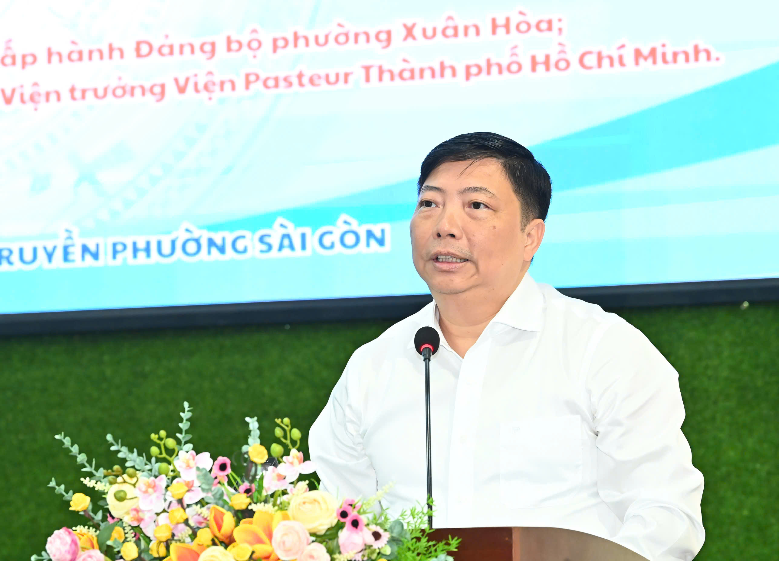 Viện trưởng Viện Pasteur TPHCM Nguyễn Vũ Trung trình bày chương trình hành động. Ảnh: VIỆT DŨNG