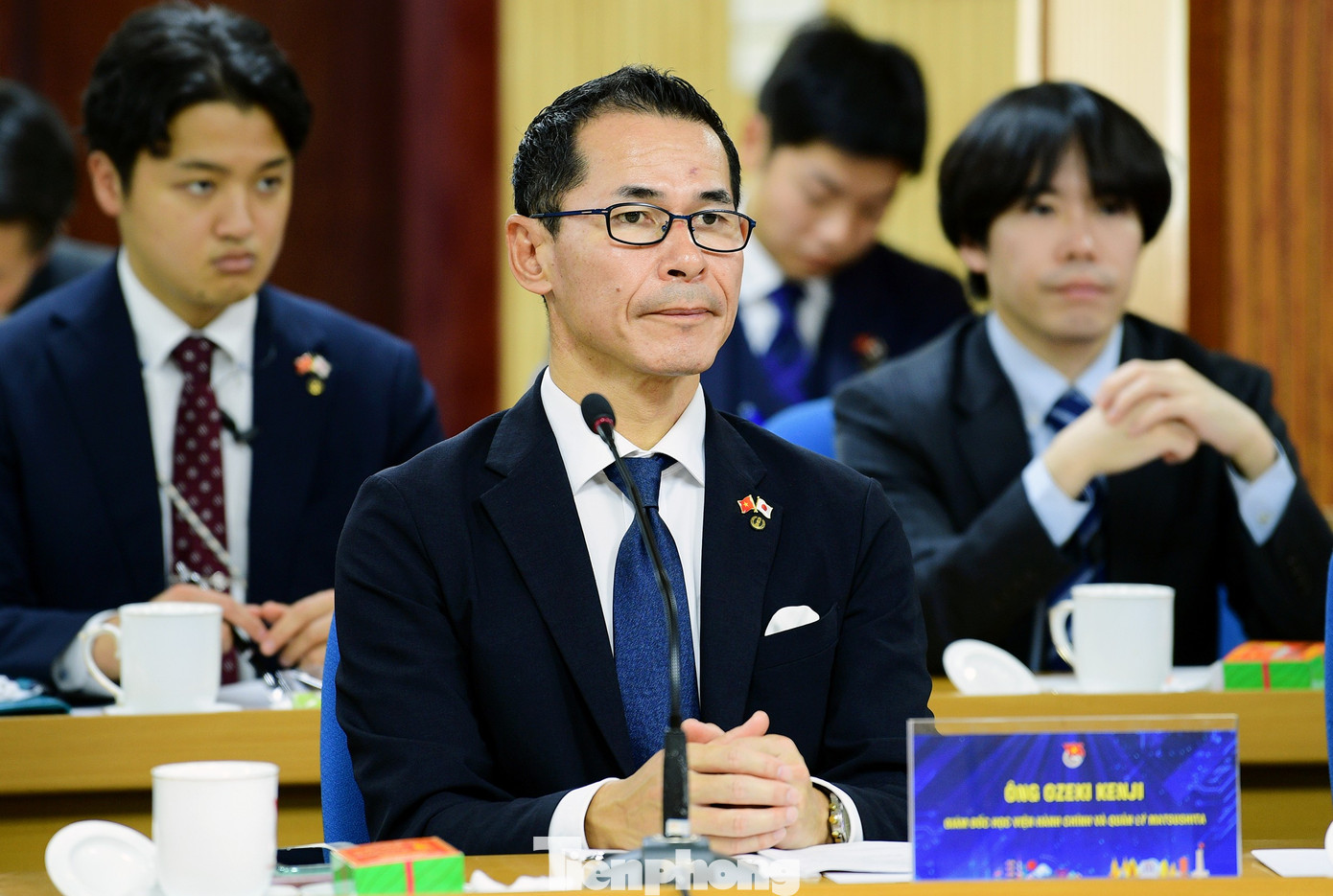 Chủ trì tọa đàm có anh Bùi Quang Huy - Ủy viên dự khuyết T.Ư Đảng, Phó Chủ tịch Ủy ban T.Ư Mặt trận Tổ quốc Việt Nam, Bí thư thứ nhất T.Ư Đoàn TNCS Hồ Chí Minh; và ông Ozeki Kenji - Giám đốc Học viện Hành chính và Quản lý Matsushita.
