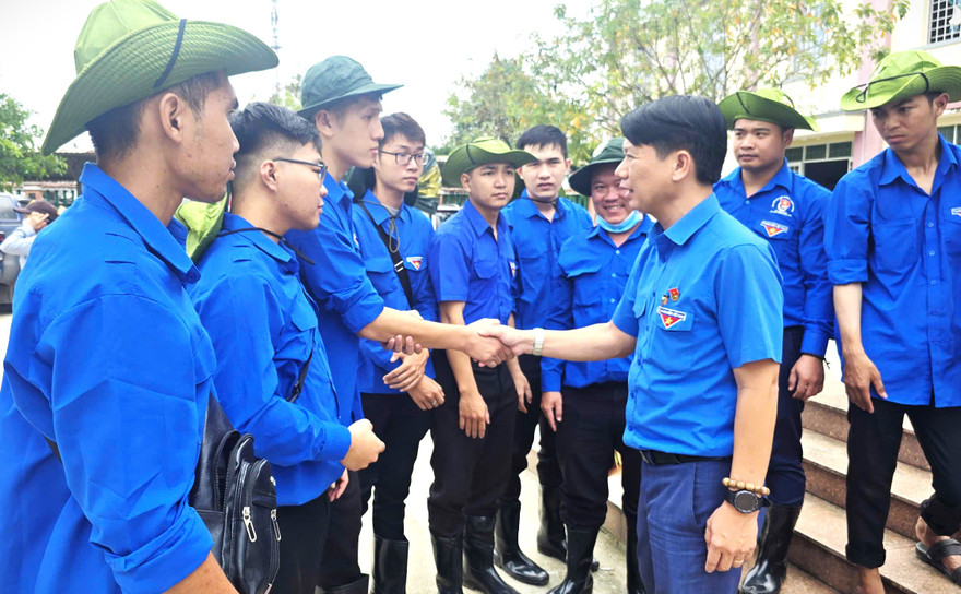 Cùng thời điểm, anh Lương Minh Tùng cũng đã đến thăm, động viên đội hình thanh niên tình nguyện đang tích cực hỗ trợ người dân xã Hòa Thịnh thu dọn bùn đất, sửa sang nhà cửa và khắc phục các thiệt hại còn lại sau lũ.