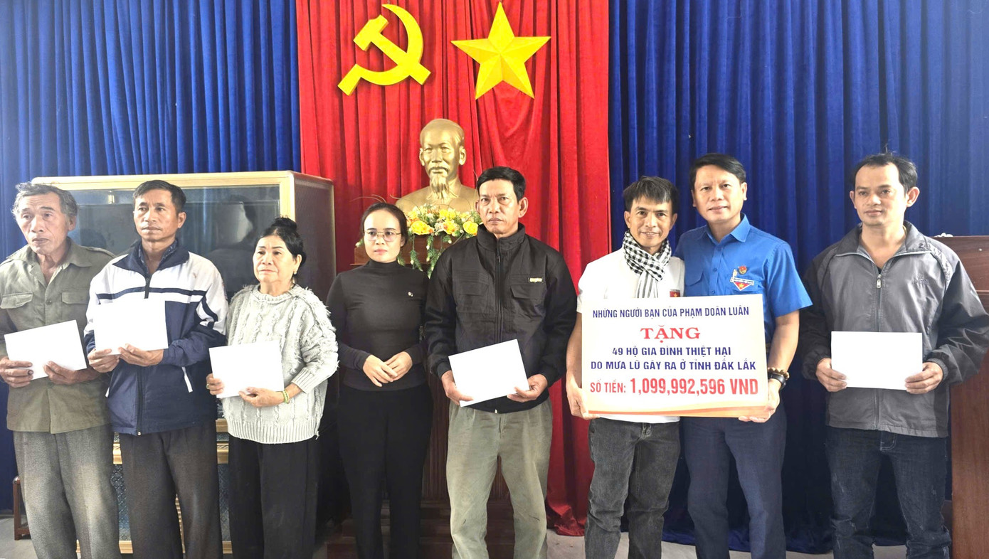 Ngày 26/11, anh Lương Minh Tùng – Phó Chủ tịch Ủy ban MTTQ Việt Nam tỉnh, Bí thư Tỉnh Đoàn Đắk Lắk đã kết nối ông Phạm Doãn Luân cùng những người bạn tại TP Hồ Chí Minh đến thăm hỏi, động viên và trao quà hỗ trợ cho người dân chịu thiệt hại nặng nề sau mưa lũ.