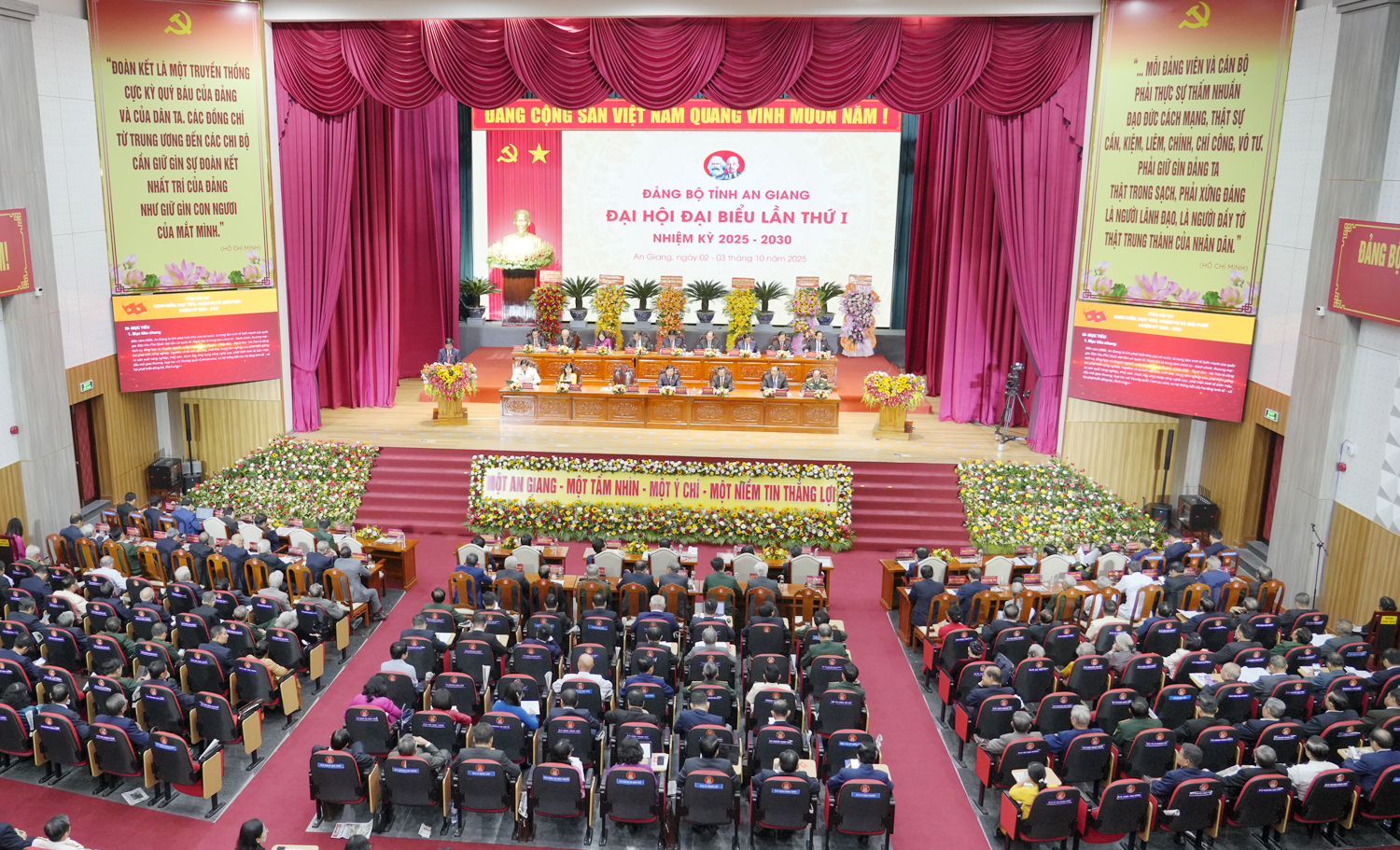 Đại hội Đảng bộ tỉnh An Giang lần thứ nhất, nhiệm kỳ 2025 - 2030 diễn ra trong 2 ngày 2-3/10.