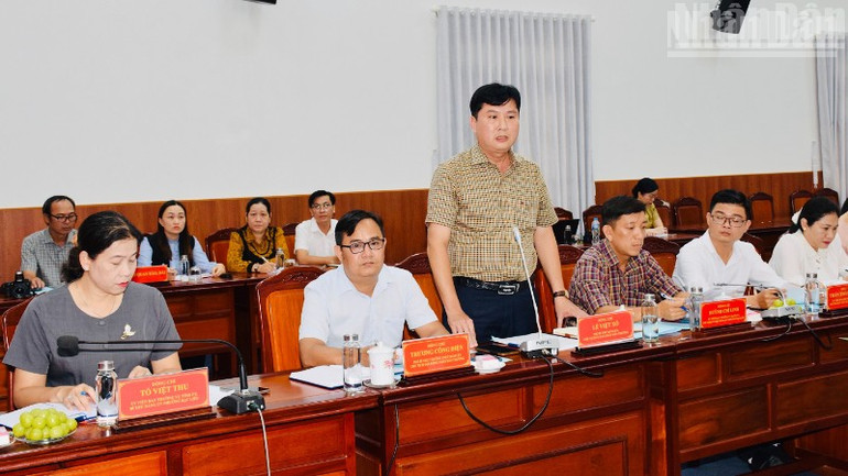 Đồng chí Lê Việt Xô, Phó Bí thư Đảng ủy, Chủ tịch Ủy ban nhân dân phường Bạc Liêu, thay mặt Thường trực Đảng ủy phường, báo cáo tình hình thuận lợi, khó khăn, kiến nghị với Đoàn công tác của đồng chí Bí thư Tỉnh ủy Cà Mau.