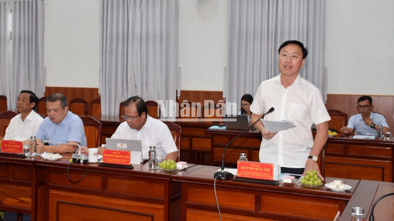 Đồng chí Huỳnh Hữu Trí, Ủy viên Ban Thường vụ Tỉnh ủy, Chủ nhiệm Ủy ban Kiểm tra Tỉnh ủy Cà Mau phát biểu ý kiến tại buổi làm việc.