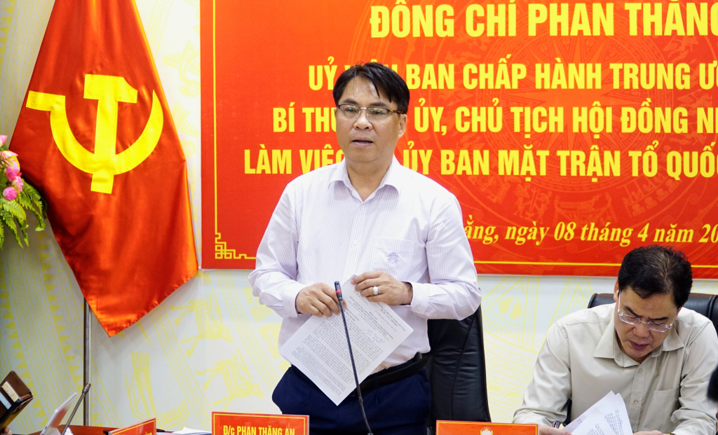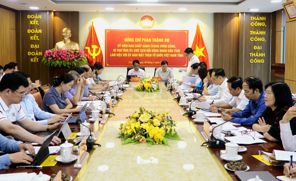 Phát biểu kết luận cuộc làm việc, đồng chí Phan Thăng An, Bí thư Tỉnh ủy, Chủ tịch HĐND tỉnh ghi nhận, đánh giá cao những kết quả thực hiện nhiệm vụ quý I của Ủy ban MTTQ Việt Nam tỉnh và các các tổ chức Hội quần chúng do Đảng, Nhà nước giao nhiệm vụ. Khẳng định vai trò quan trọng của MTTQ là “cầu nối” giữa Đảng, Nhà nước với nhân dân, đồng chí Bí thư Tỉnh ủy, Chủ tịch HĐND tỉnh đề nghị thời gian tới, MTTQ tỉnh, các tổ chức chính trị - xã hội, các hội quần chúng do Đảng và Nhà nước giao nhiệm vụ cần tiếp tục củng cố tổ chức, nâng cao chất lượng hoạt động của tổ chức Đảng; kiện toàn bộ máy theo hướng tinh gọn, hiệu năng, hiệu lực, hiệu quả; chú trọng xây dựng đội ngũ cán bộ Mặt trận tâm huyết, trách nhiệm, gần dân, sát dân. Đồng thời, đổi mới mạnh mẽ nội dung, phương thức hoạt động theo hướng thiết thực, hiệu quả; chuyển mạnh từ hành chính sang hướng về cơ sở, lấy người dân làm trung tâm trong triển khai các nhiệm vụ.