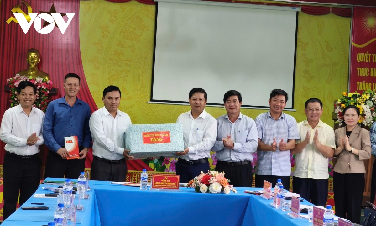 Ông Lương Nguyễn Minh Triết, Bí thư Tỉnh ủy Đắk Lắk tặng quà cán bộ, chính quyền xã Ia Lốp