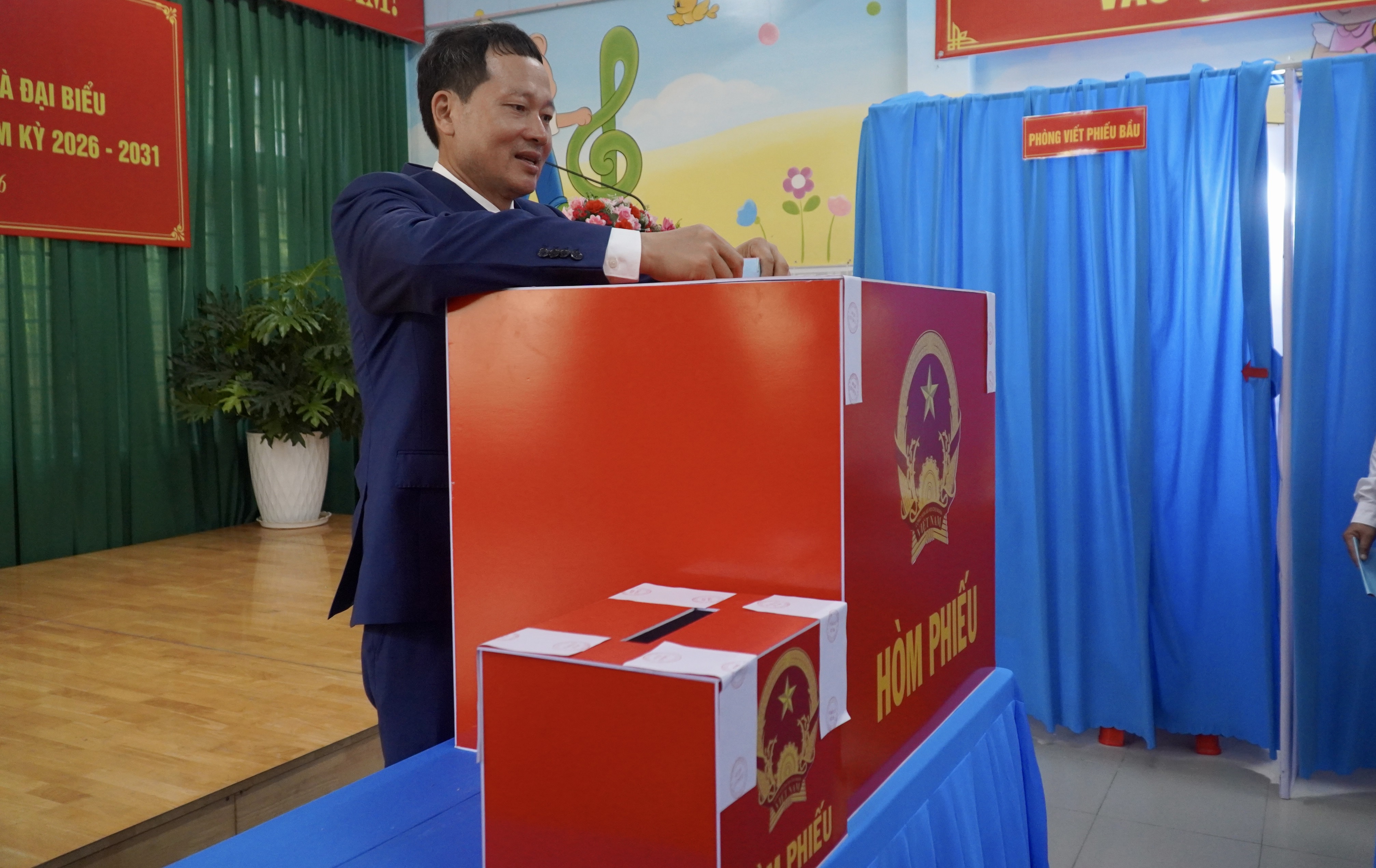 Bí thư Tỉnh ủy, Trưởng Đoàn ĐBQH tỉnh Đồng Nai Vũ Hồng Văn bỏ phiếu bầu cử. Ảnh: VŨ HỘI
