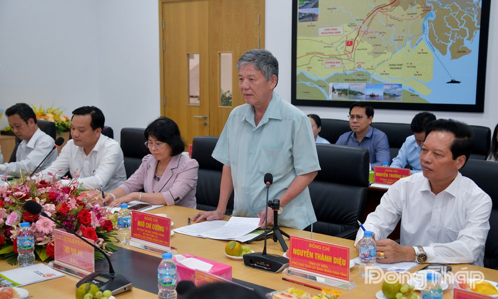 Đồng chí Nguyễn Thành Diệu phát biểu tại buổi làm việc với Công ty TNHH Phát triển KCN Long Giang.