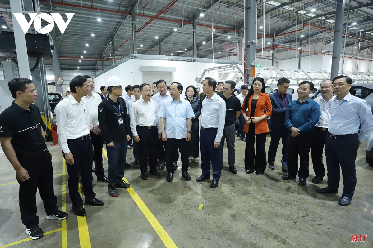 Bí thư Tỉnh ủy Nguyễn Duy Lâm và đoàn công tác kiểm tra, động viên công nhân tại Nhà máy sản xuất ô tô điện VinFast, tháng 2/2026.