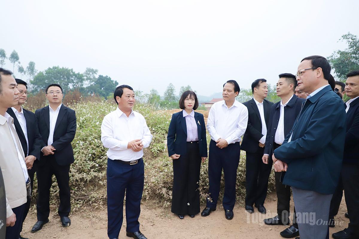 Cùng đi có các đồng chí: Nguyễn Mạnh Tuấn, Ủy viên Ban Thường vụ Tỉnh ủy, Phó Chủ tịch Thường trực UBND tỉnh; Vân Đình Thảo, Ủy viên Ban Thường vụ Tỉnh ủy, Trưởng Ban Quản lý các khu công nghiệp và khu kinh tế tỉnh; lãnh đạo một số sở, ban, ngành của tỉnhvà các xã trong vùng quy hoạch.