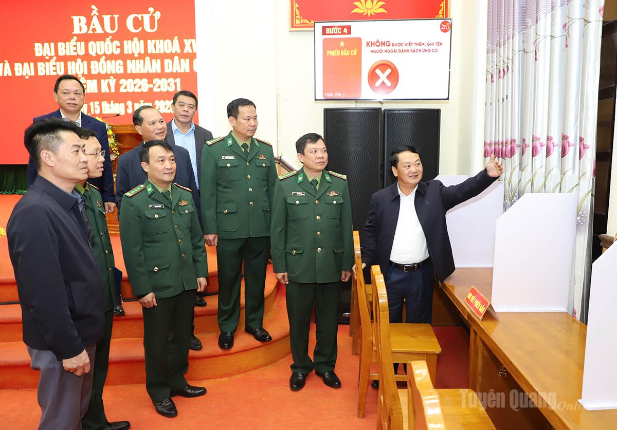 Đồng chí Bí thư Tỉnh ủy và Đoàn công tác đã kiểm tra thực tế tại một số khu vực bỏ phiếu trên địa bàn phường gồm: Khu vực bỏ phiếu số 7 tại Phân hiệu Đại học Thái Nguyên tại Hà Giang; Khu vực bỏ phiếu số 2 tại Ban Chỉ huy Bộ đội Biên phòng tỉnh; khu vực bỏ phiếu số 6 tại Nhà văn hóa liên tổ 13, 14, 15.