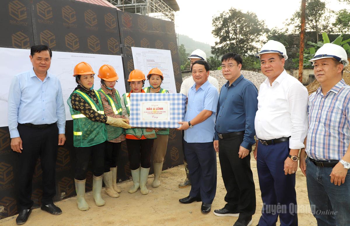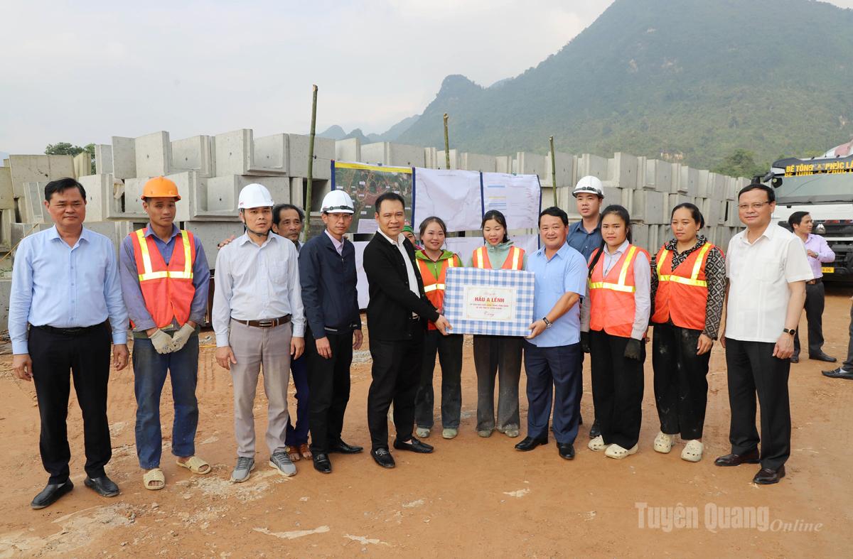 Bí thư Tỉnh ủy Hầu A Lềnh tặng quà đơn vị thi công dự án Nâng cấp Quốc lộ 2 và xây cầu mới nối Quốc lộ 2 với đường vành đai phía Nam đoạn km 286 + 450, Quốc lộ 2, tổ 19, phường Hà Giang 1.