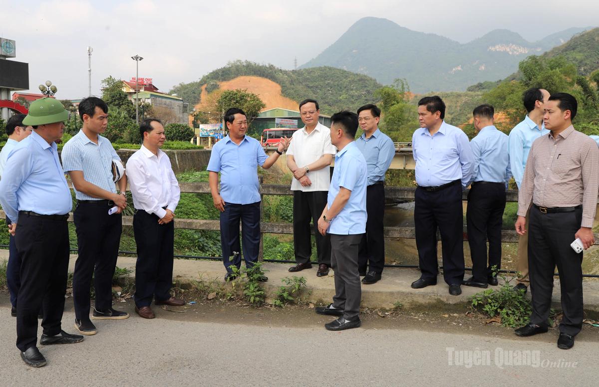 Bí thư Tỉnh ủy Hầu A Lềnh kiểm tra quy hoạch công trình Nâng cấp Quốc lộ 2 và xây cầu mới nối Quốc lộ 2 với đường vành đai phía Nam đoạn km 286 + 450, Quốc lộ 2, tổ 19, phường Hà Giang 1.